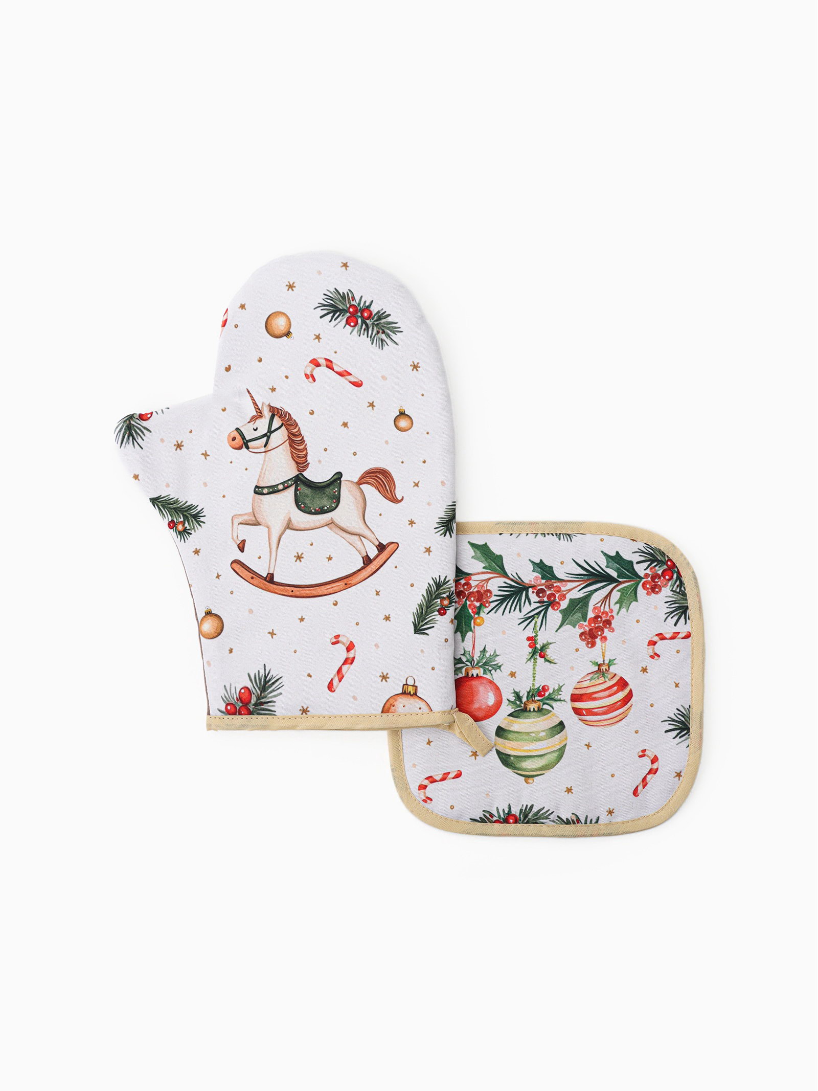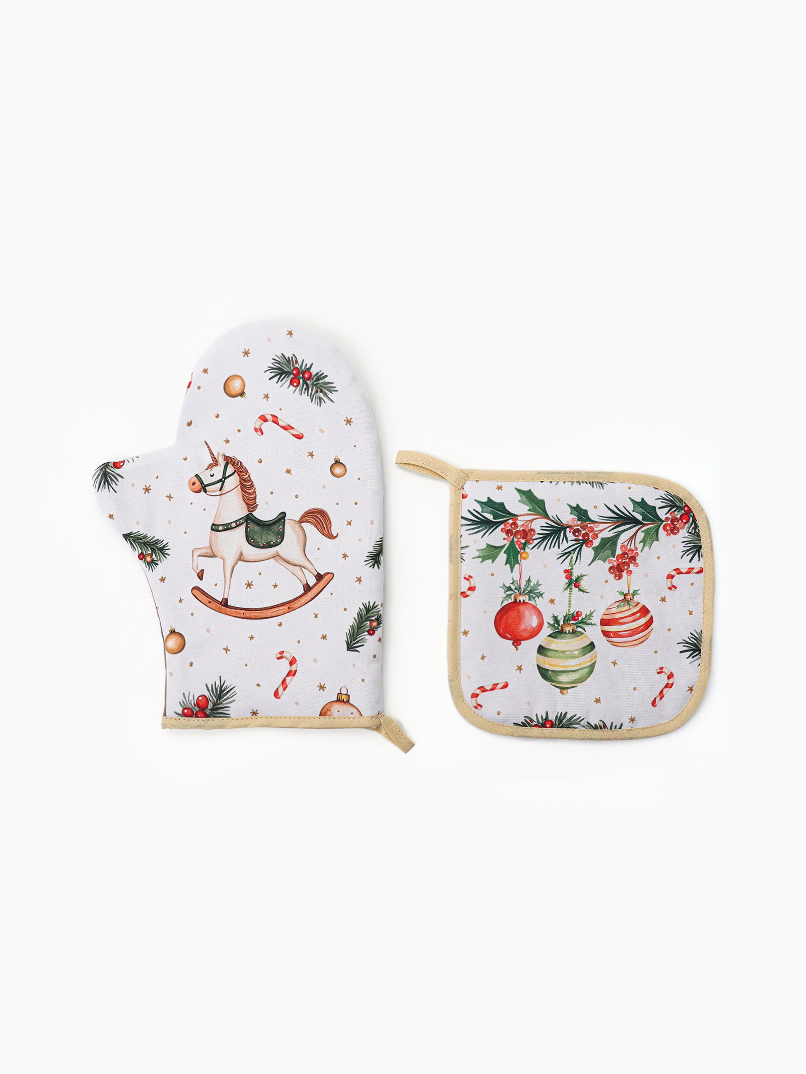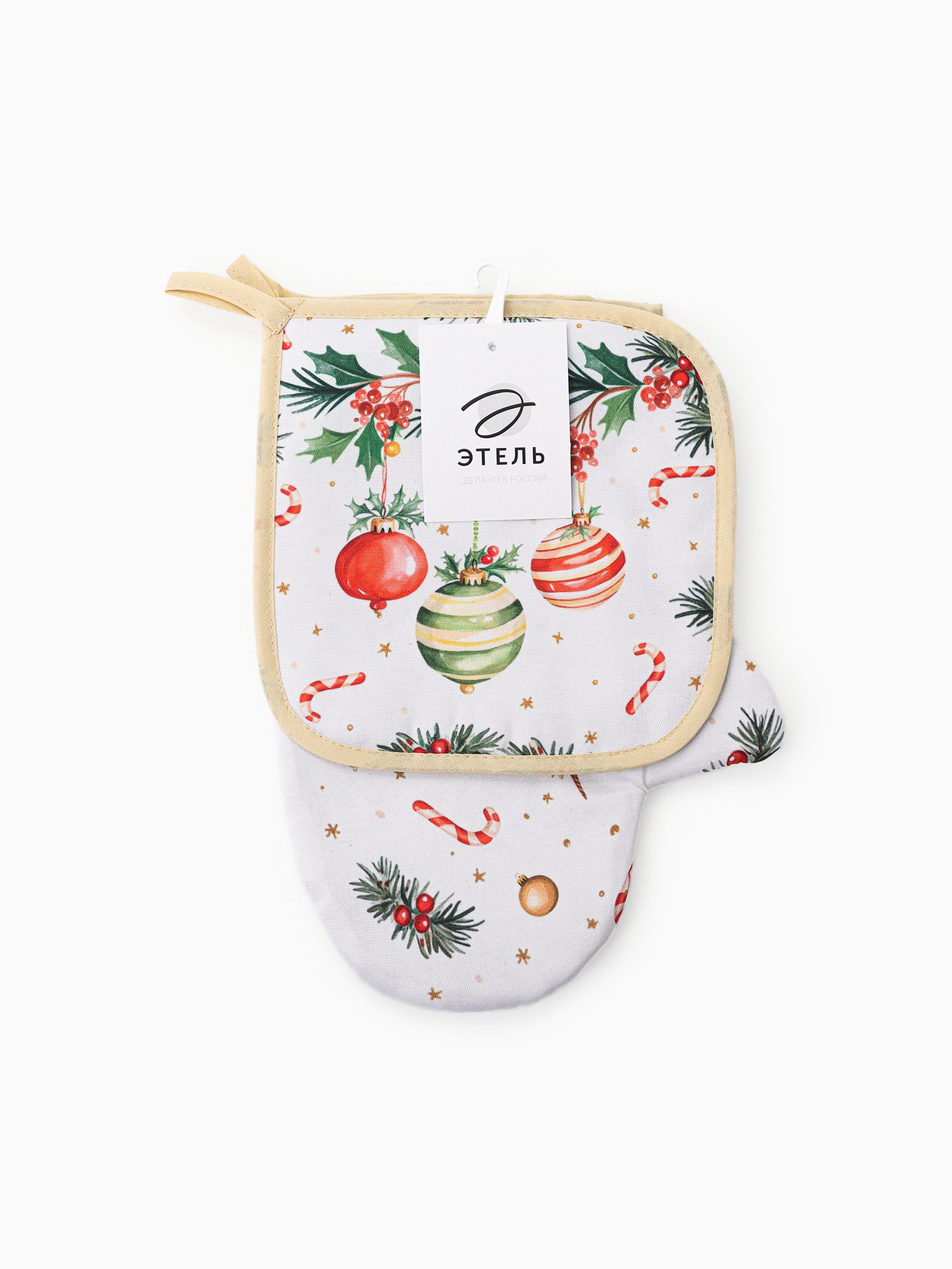 Кухонный набор: варежка-прихватка 20x28 см, прихватка 19x19 см, белая, Этель, Россия