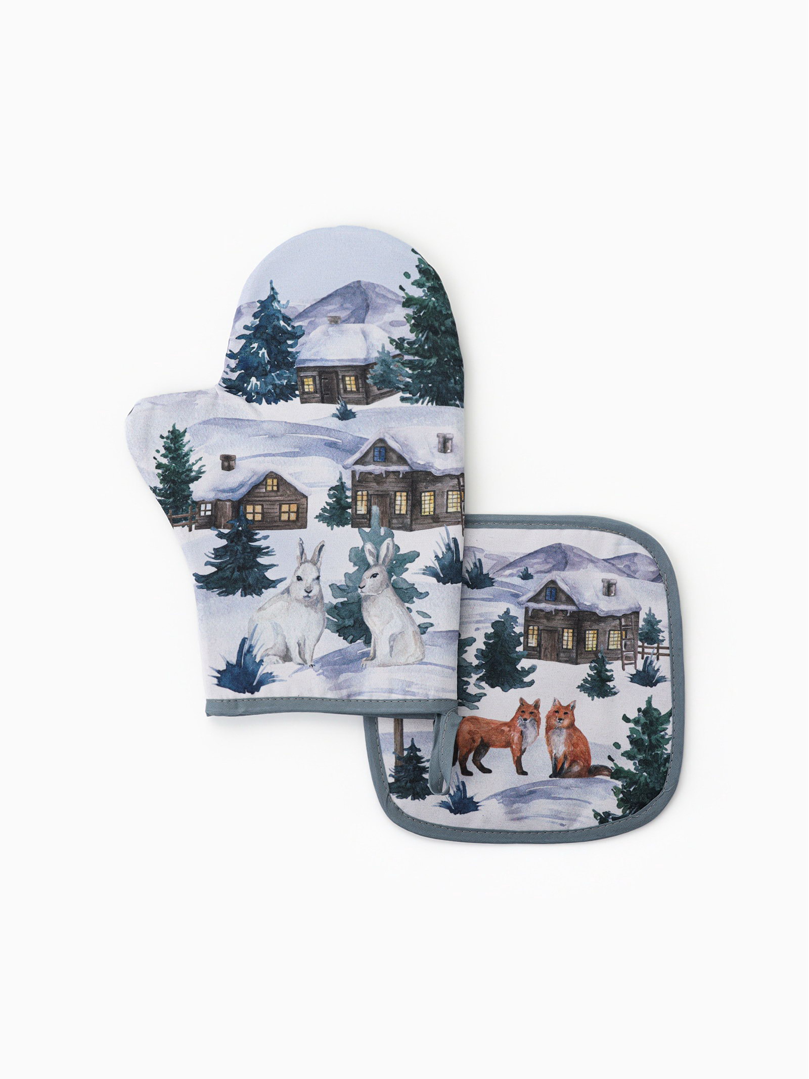 Кухонный набор Forest animals: варежка-прихватка 20x27 см, прихватка 19x19 см, Этель, Россия