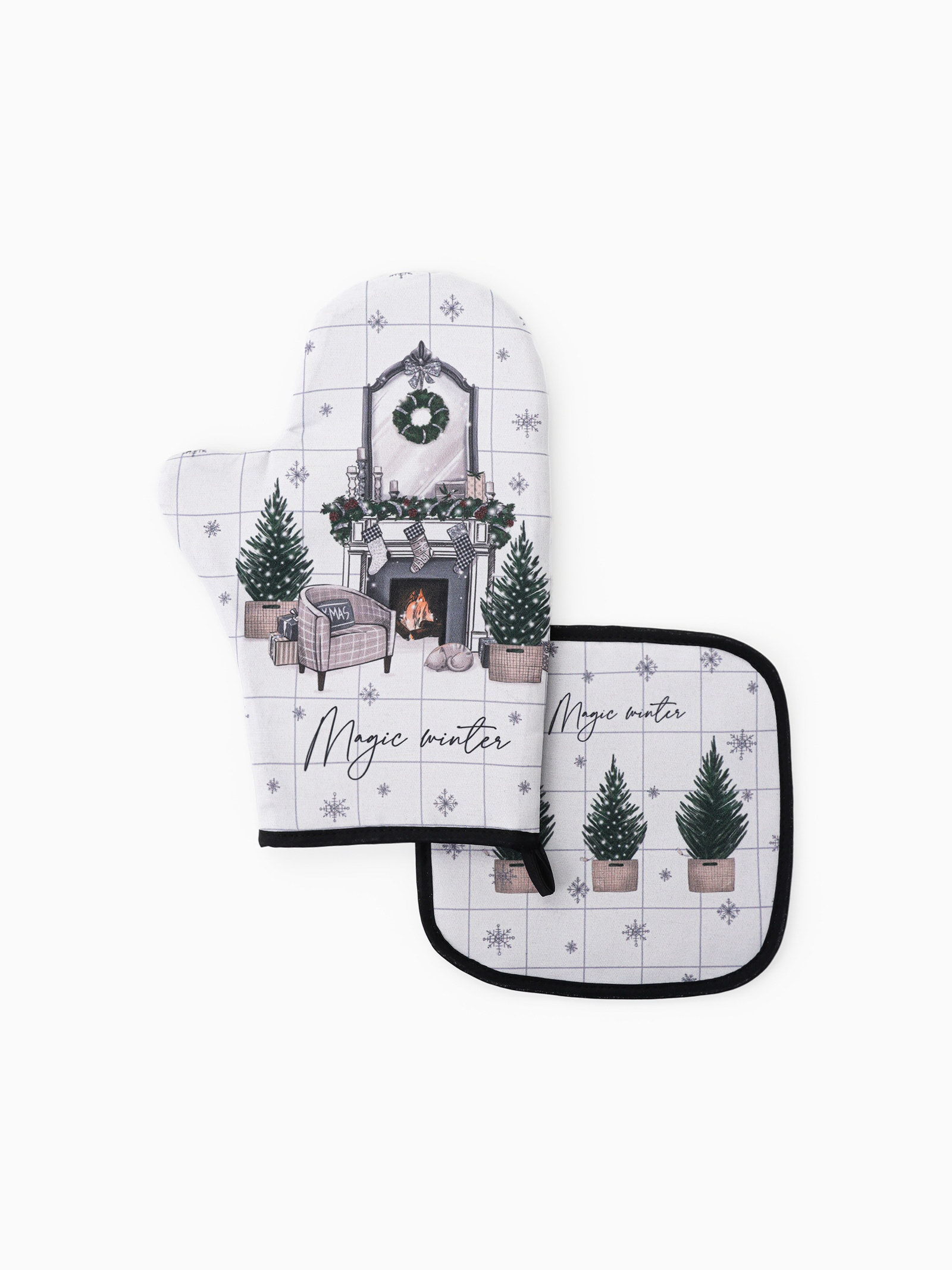 Кухонный набор Magic winter: варежка-прихватка 20x27 см, прихватка 19x19 см, Этель, Россия