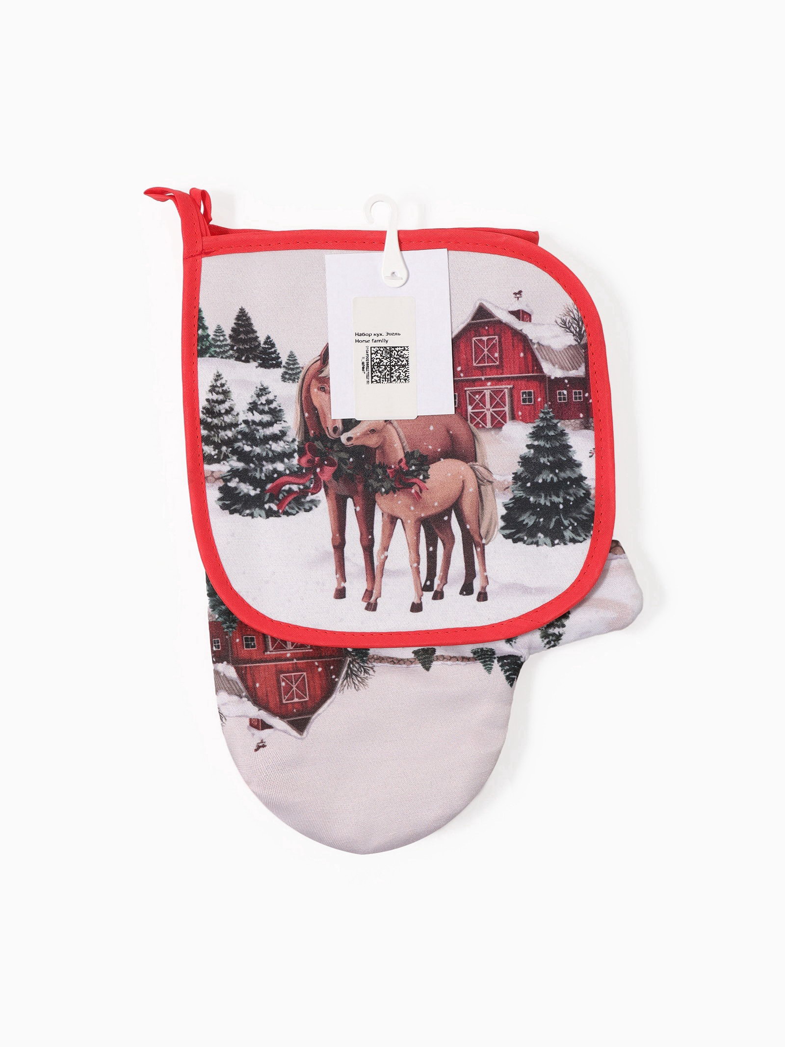 Набор кухонный Нorse family, варежка-прихватка 20x28 см, прихватка 19x19 см, Этель, Россия
