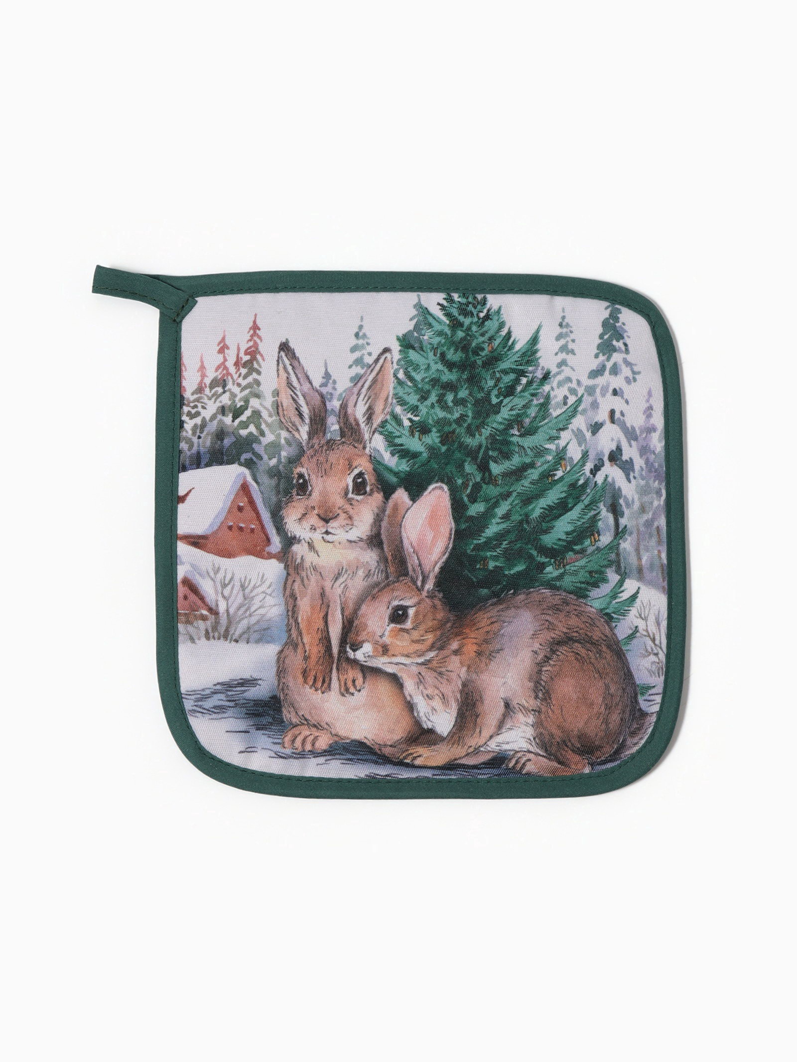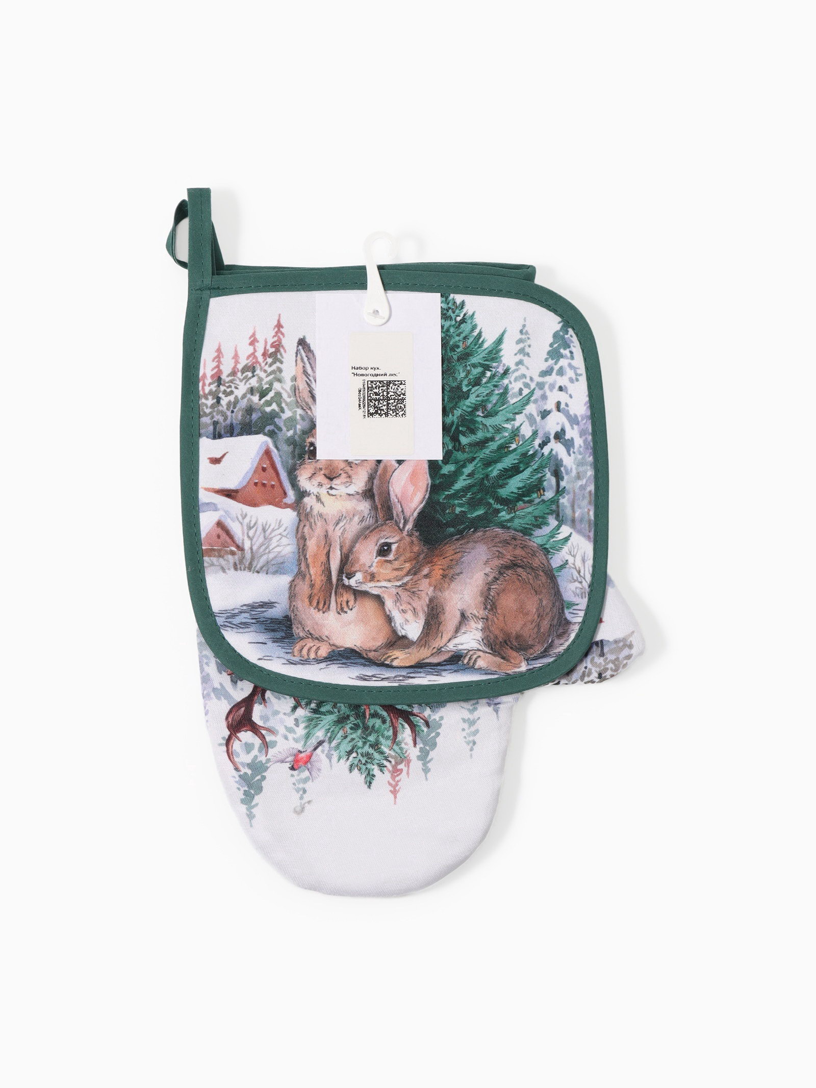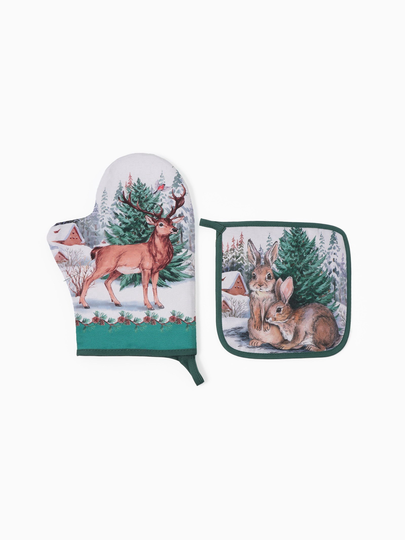 Набор кухонный "Этель. Новогодний лес", варежка-прихватка 20x28 см, прихватка 19x19 см, Этель, Россия