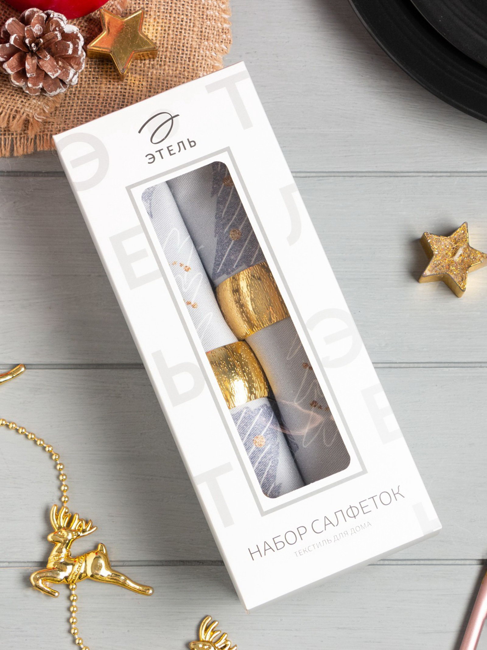 Набор салфеток сервировочных на стол, Let it snow, 2 шт., серые, с декоративными кольцами, 40x40 см, Этель, Россия