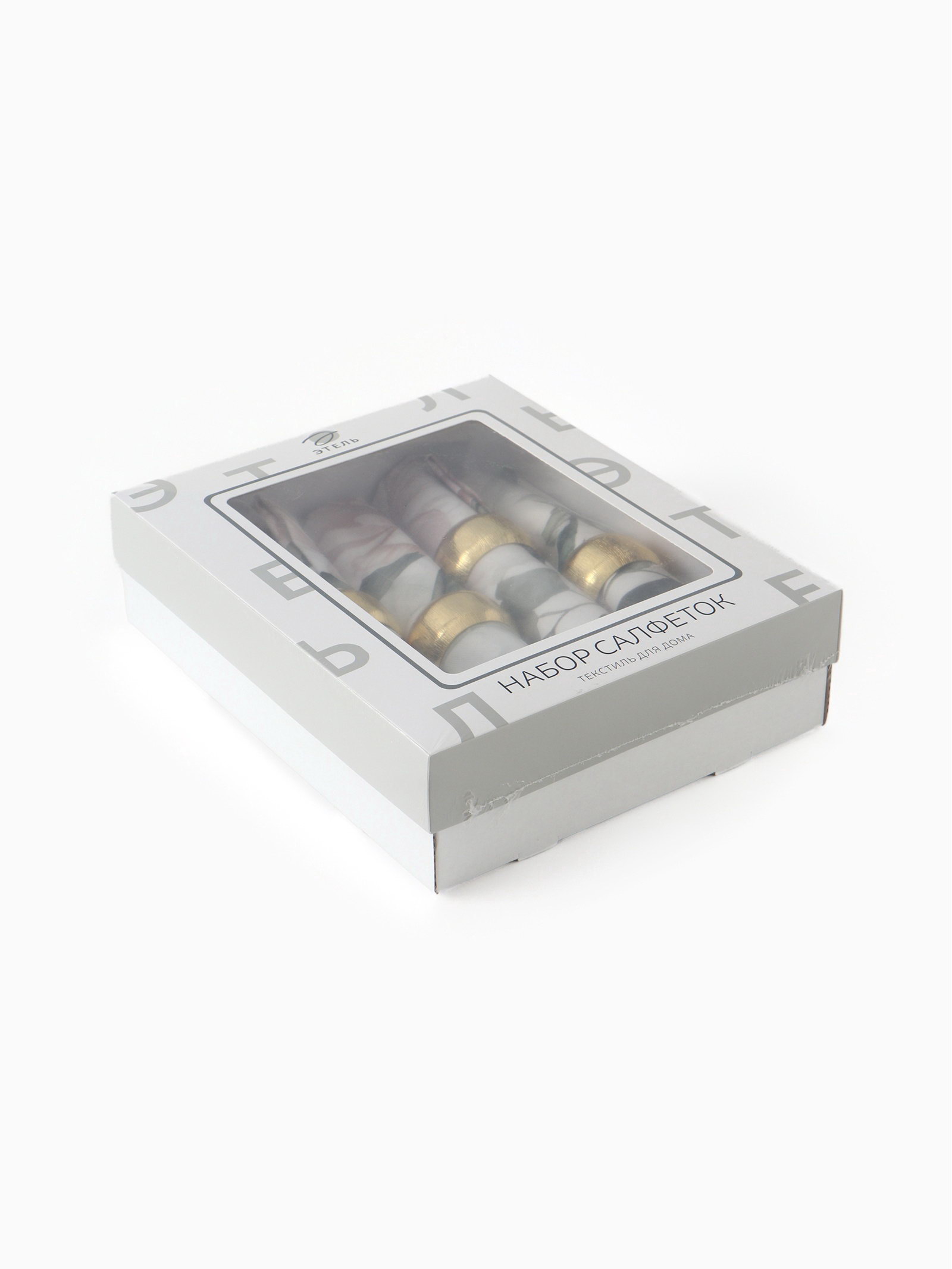 Рекомендации по уходу: Глажка при 150 ℃, Деликатная стирка при 40 ℃, Деликатный режим отжима, Не отбеливать Размер упаковки: 20 x 7 x 24.5 см. Рисунок: Да tnved: 6302510000 tnved: 6302510000 Температурное ограничение: Нет Честный знак: Да Цвет: Белый Размер, см: 40 x 40 Состав ткани: Хлопок Ткань: Саржа Набор: Да В наборе, шт.: 4 Плотность, г/?2: 190 Форма: Квадратная Вид упаковки: Коробка картонная с PVC Тематика: Цветочно-растительная Декоративные элементы: Кольца Комплектация: 4 салфетки | ||