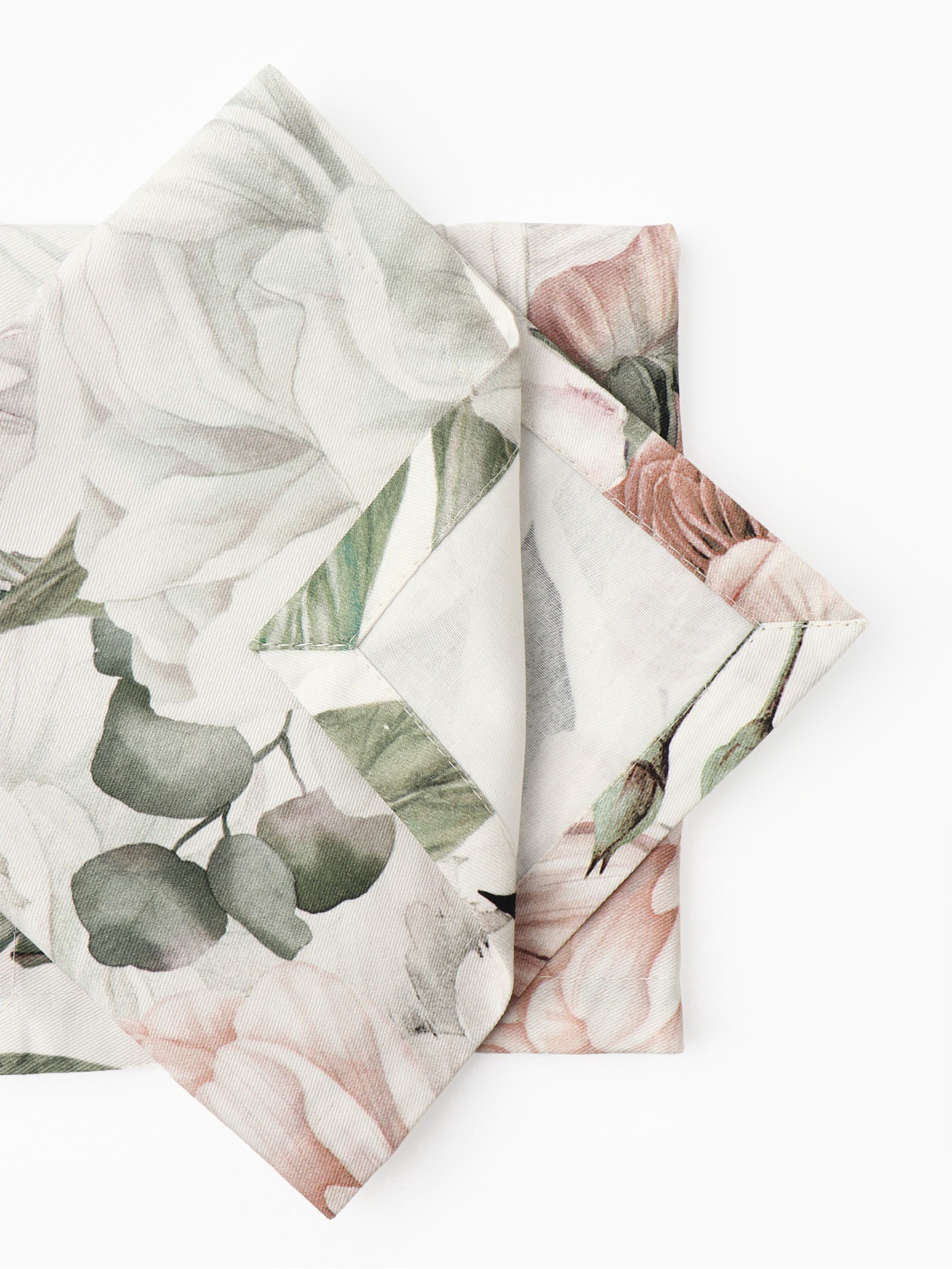 Набор салфеток с декоративными кольцами "Пионы" 40x40 см - 4 шт., 100% хл, саржа, Этель, Россия
