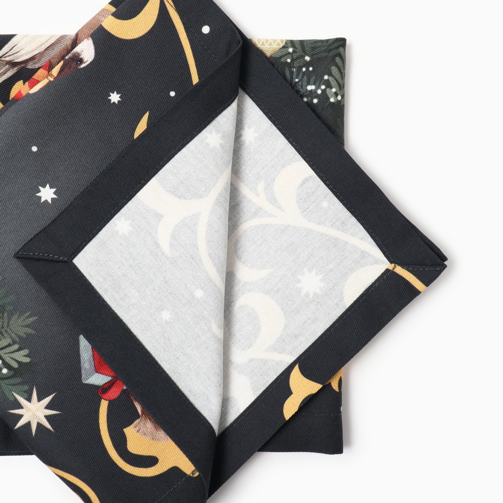 Почему этот набор выбирают для праздничного стола? Он сочетает эстетику с практичностью тёмный фон подчёркивает праздничную посуду и создаёт элегантный контраст, а качественный хлопок обеспечивает функциональность. Салфетки можно использовать как для торжественного ужина, так и для тематических фотосессий. Смелое решение для тех, кто ценит глубину цвета и выразительность в деталях сервировки! | ||