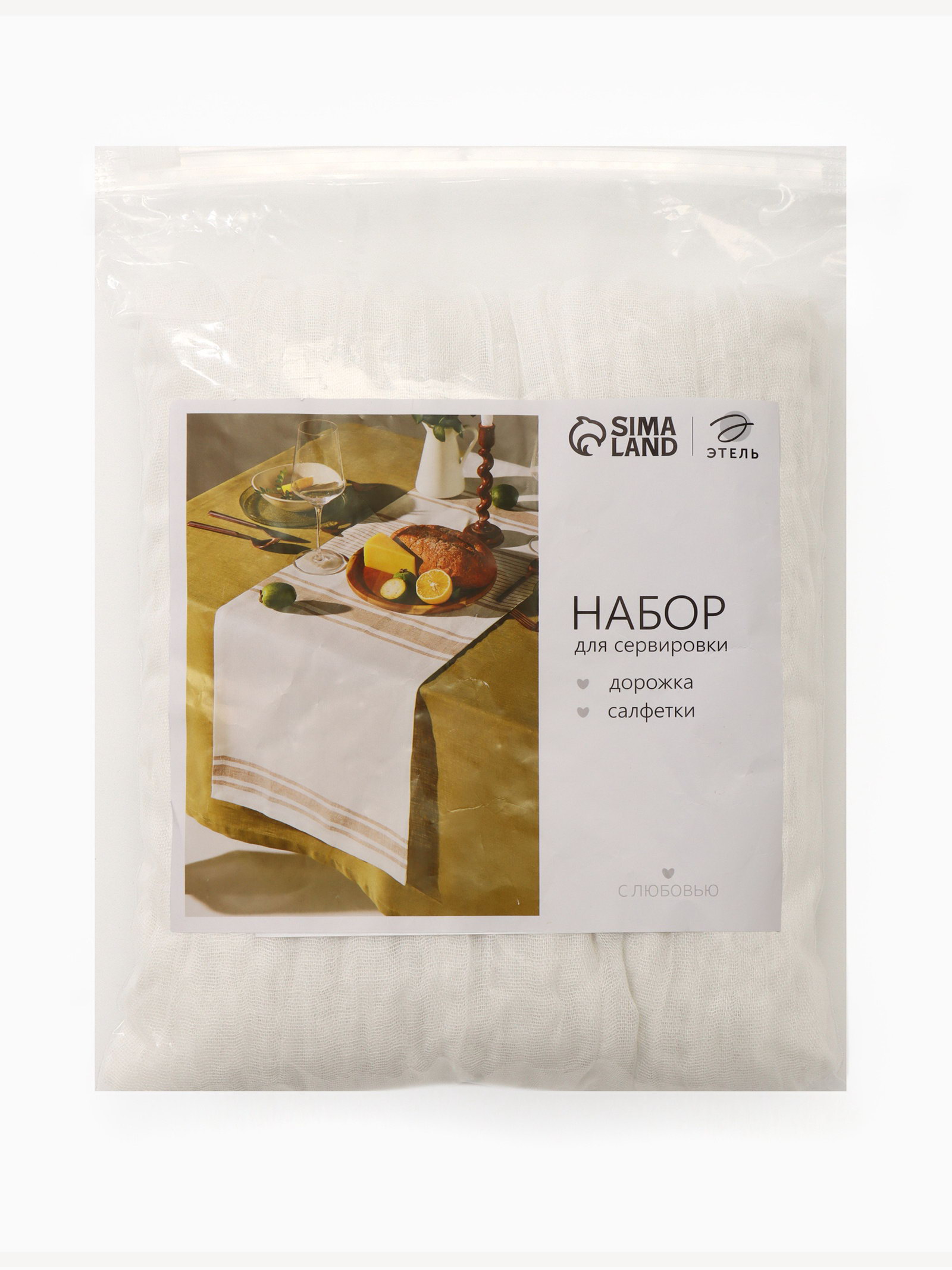 Набор сервировочный: дорожка 90x300 см, салфетка 50x50 см -4 шт., белый, 100% п/э, 90x300 см., Этель, Китай