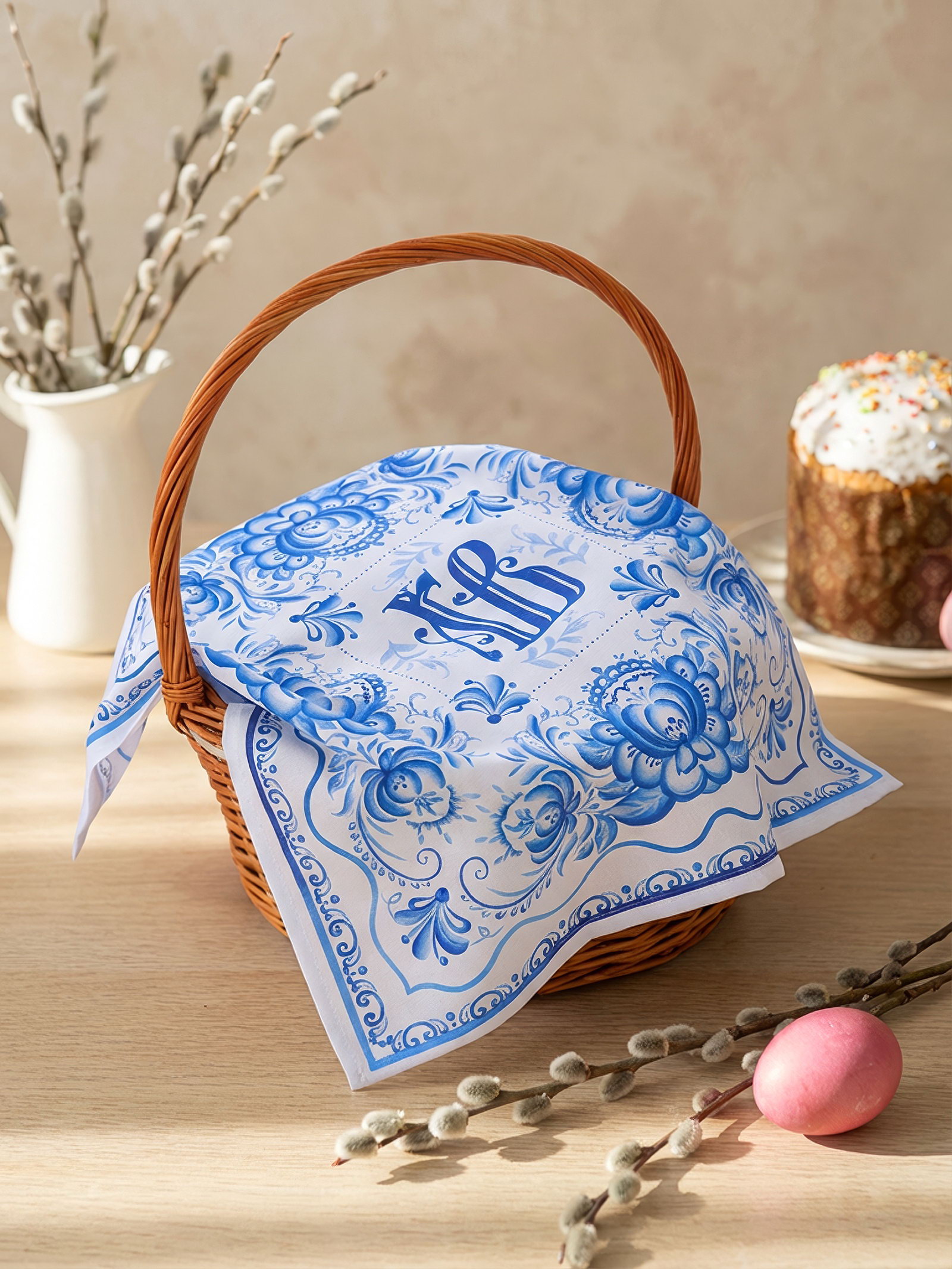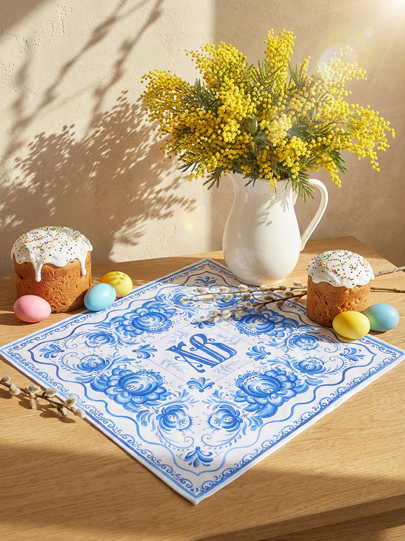 Салфетка пасхальная на стол "Гжель ХВ" 65x65 см, Доляна, Россия