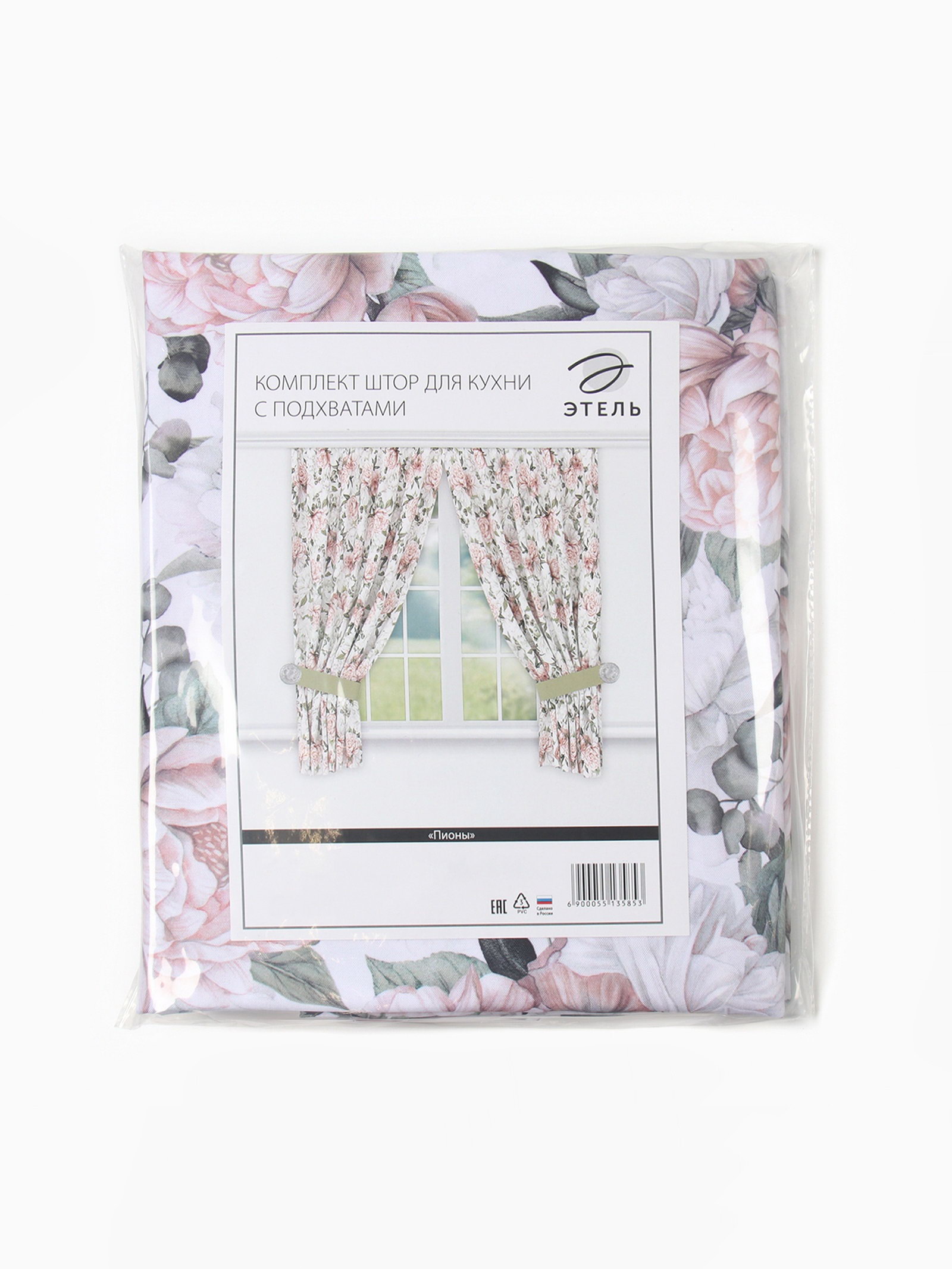 Комплект штор для кухни с подхватами "Пионы" 145х180см-2 шт., 100% п/э, Этель, Россия