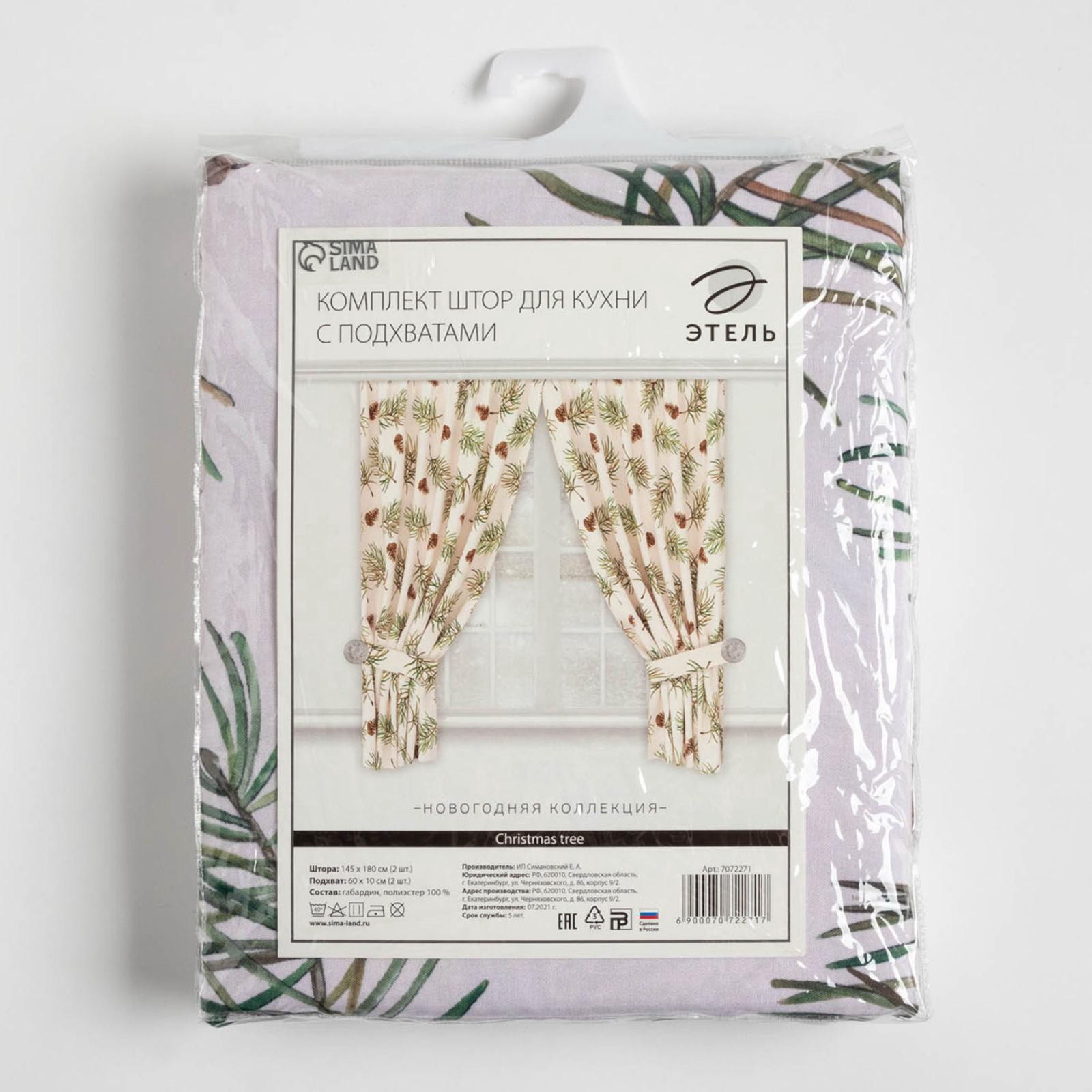 Комплект штор для кухни с подхватами Christmas tree 145х180см-2 штуки, габардин, 145x180 см., Этель, Россия