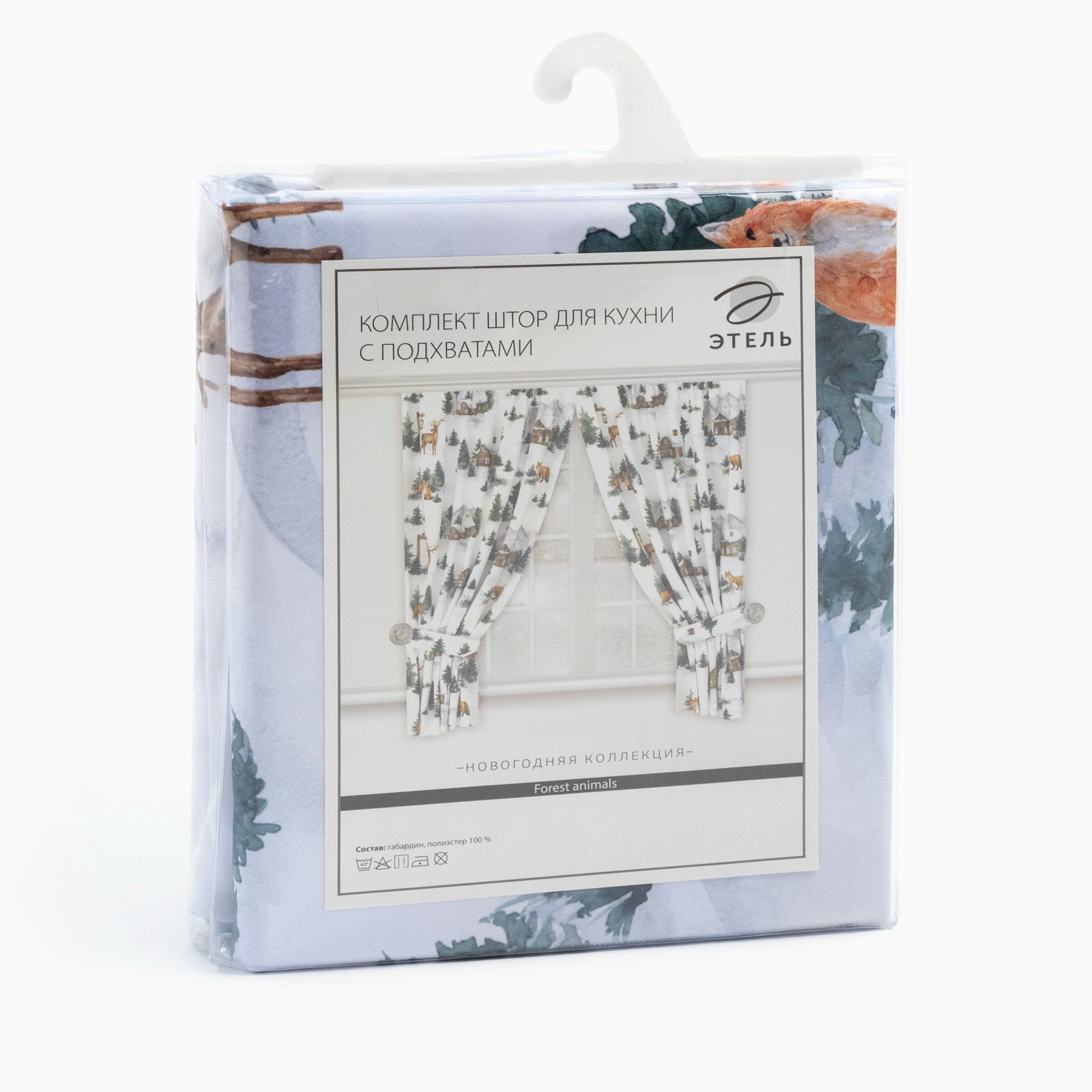 Комплект штор для кухни с подхватами Forest animals 145x180 см-2 шт., габардин, Этель, Россия