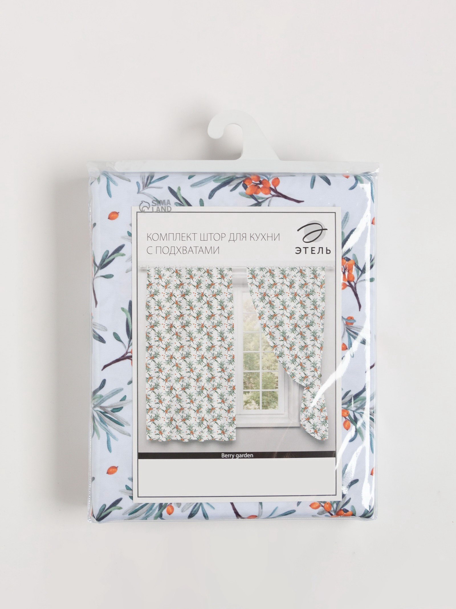 Комплект штор для кухни с подхватами Berry garden, 145x180 см-2 шт., 100% п/э, Этель, Россия