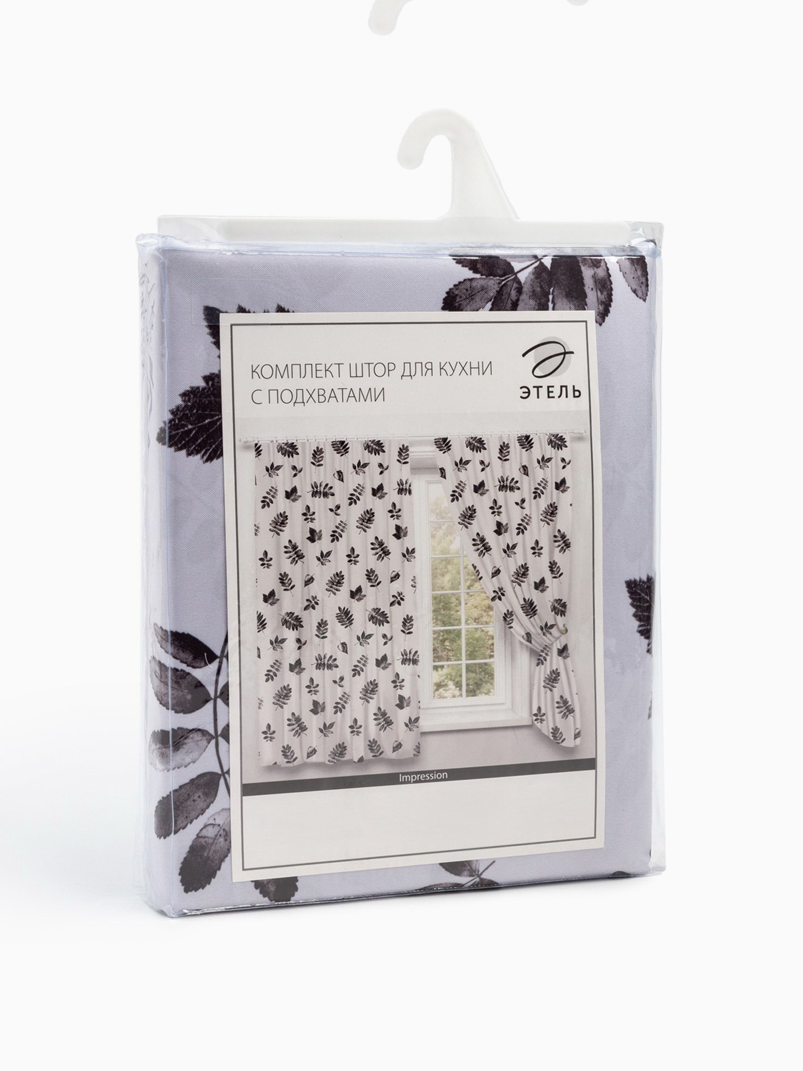 Комплект штор для кухни с подхватами "Impression" 145x180 см - 2 шт., 100% п/э, Этель, Россия