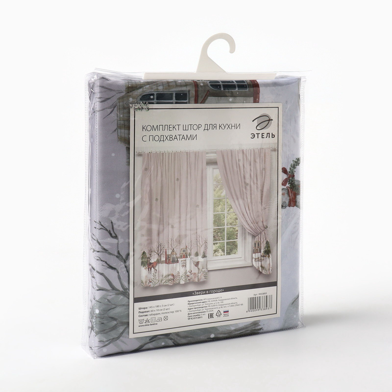 Комплект штор для кухни с подхватами "Звери в городе" 145x180 см-2 штуки, 100% п/э, Этель, Россия