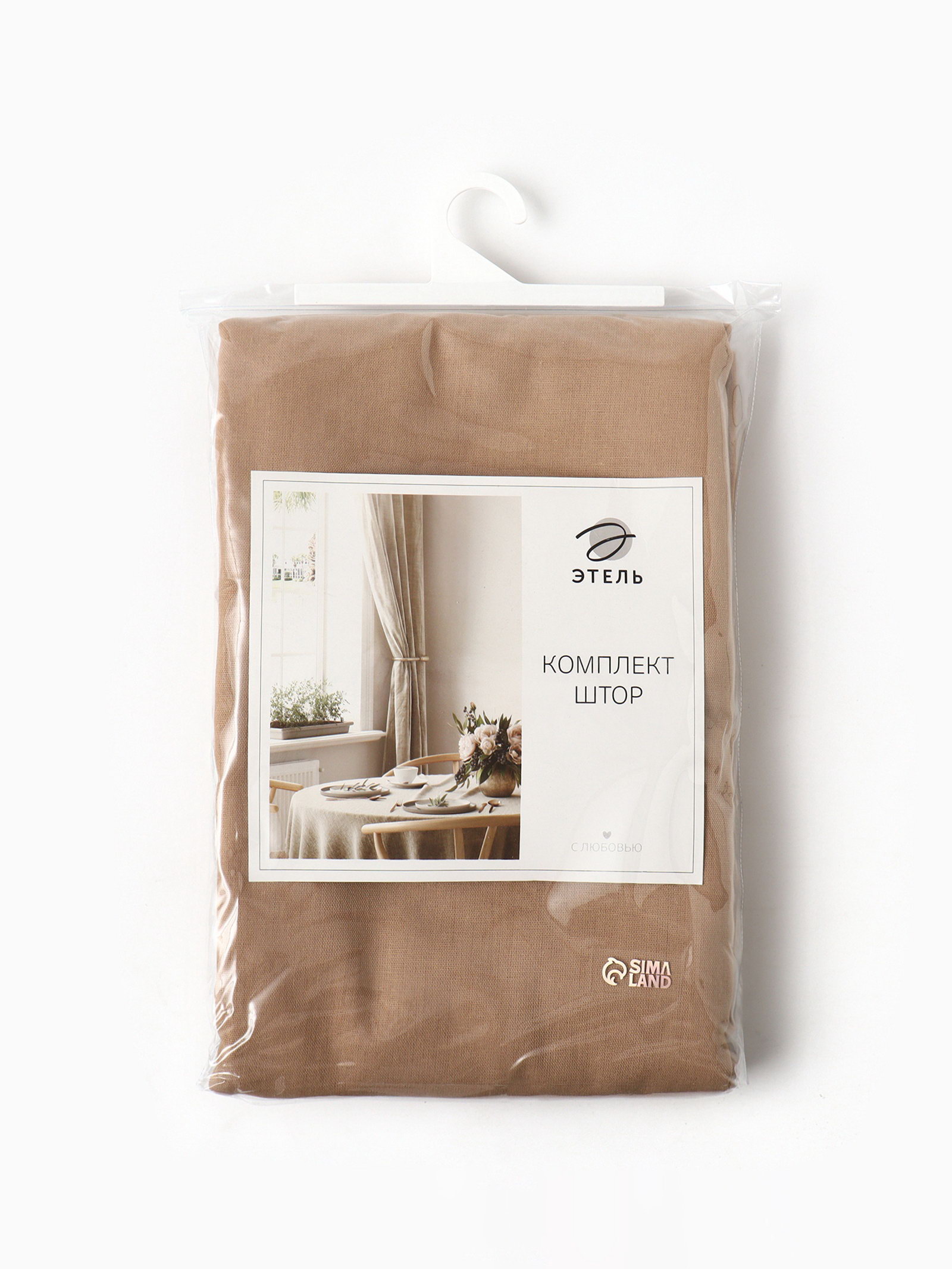 Шторы для кухни ECO, бежевые, 136x180 см - 2 шт., подхваты - 2 шт., 70% хлопок, 30% лён, 190 г/?2, Этель, Россия