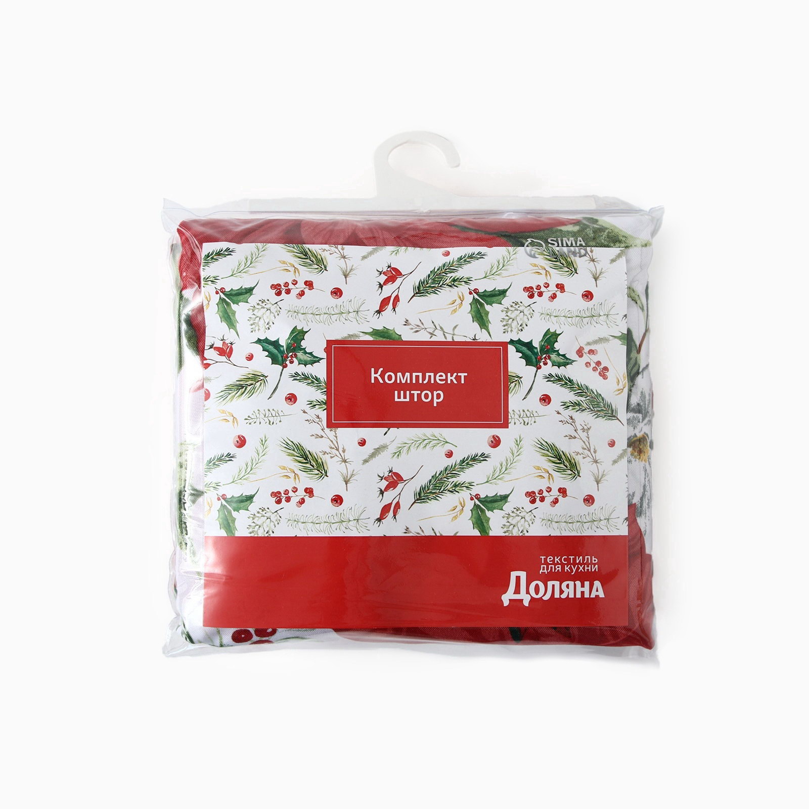 Комплект штор для кухни с подхватами "Доляна. Рождественские цветы", 2 шт., белые, 145x180 см, Доляна, Россия