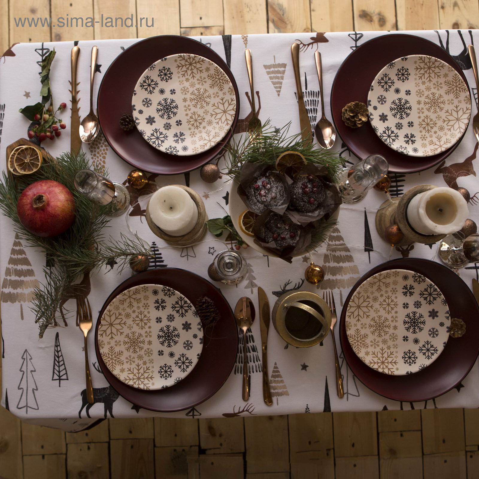 Скатерть новогодняя X-Mas 146х220+/- 3см, 100%хл, рогожка 164 г/м2, 146x220 см., Доляна, Россия