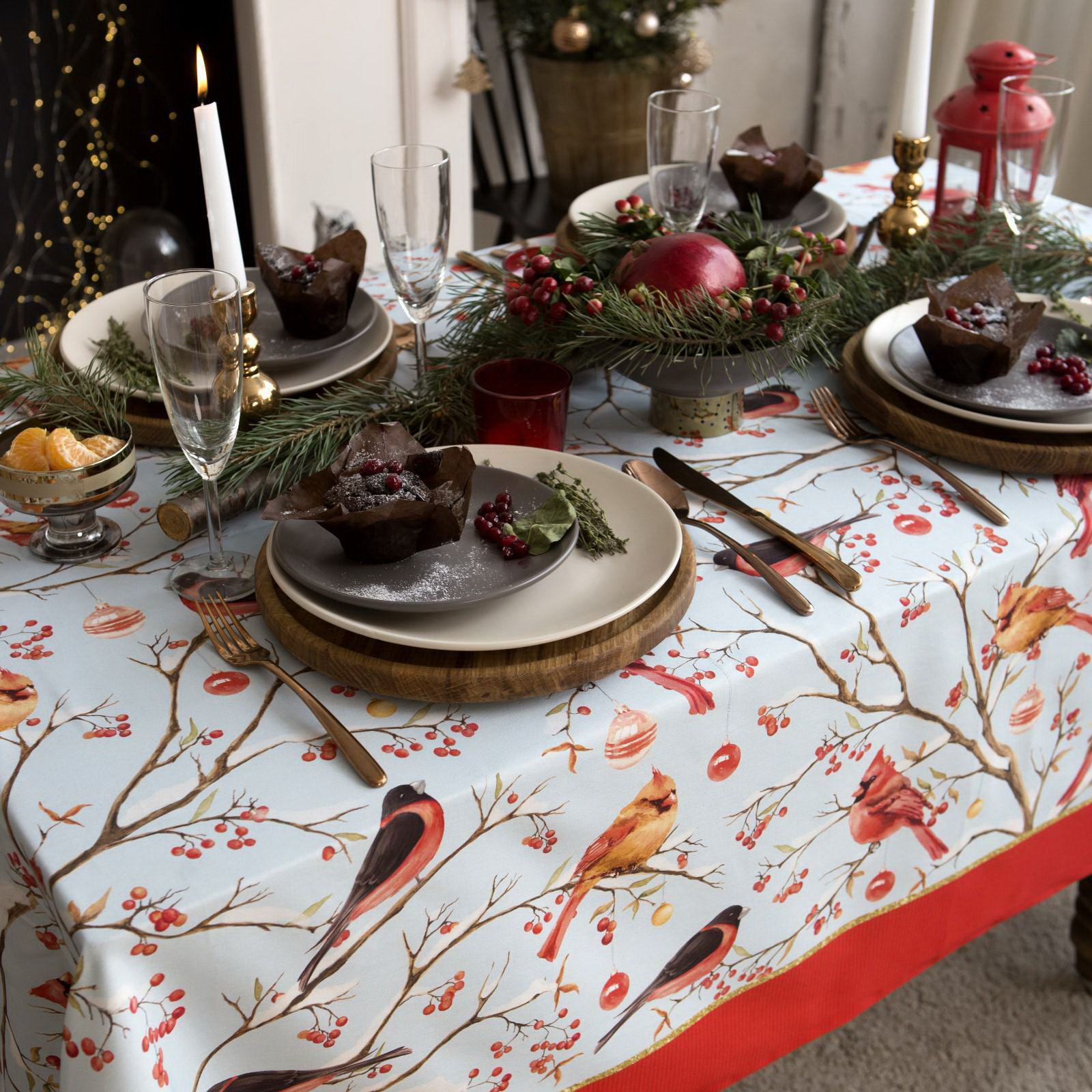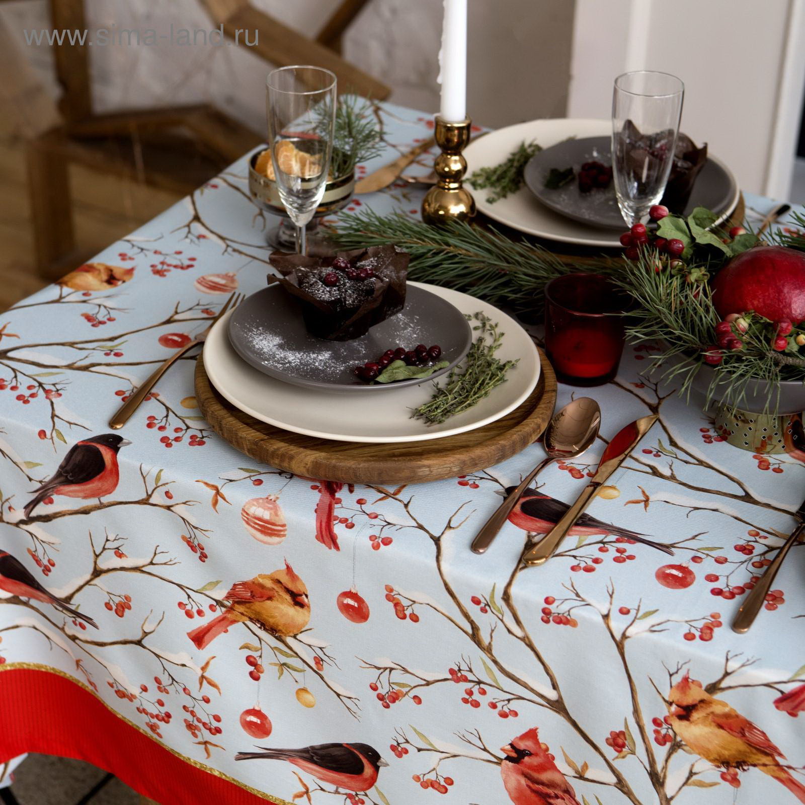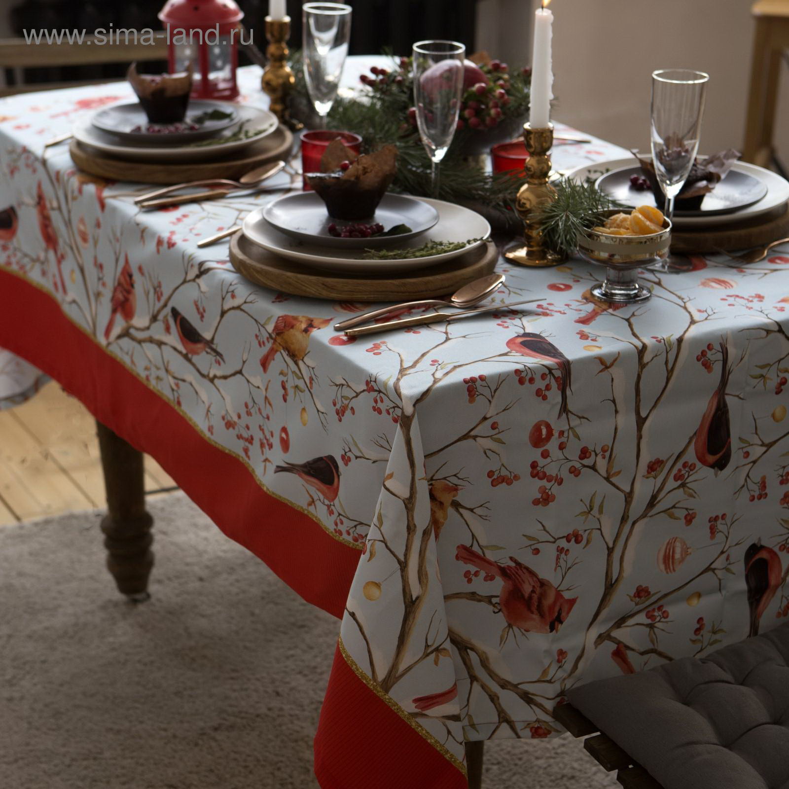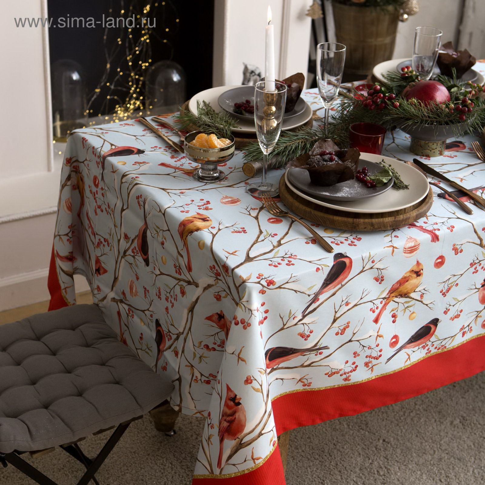 Скатерть Winter birds, 149x220 см с ГМВО, 100% хлопок, 190 г/?2, 149x220 см., Этель, Россия
