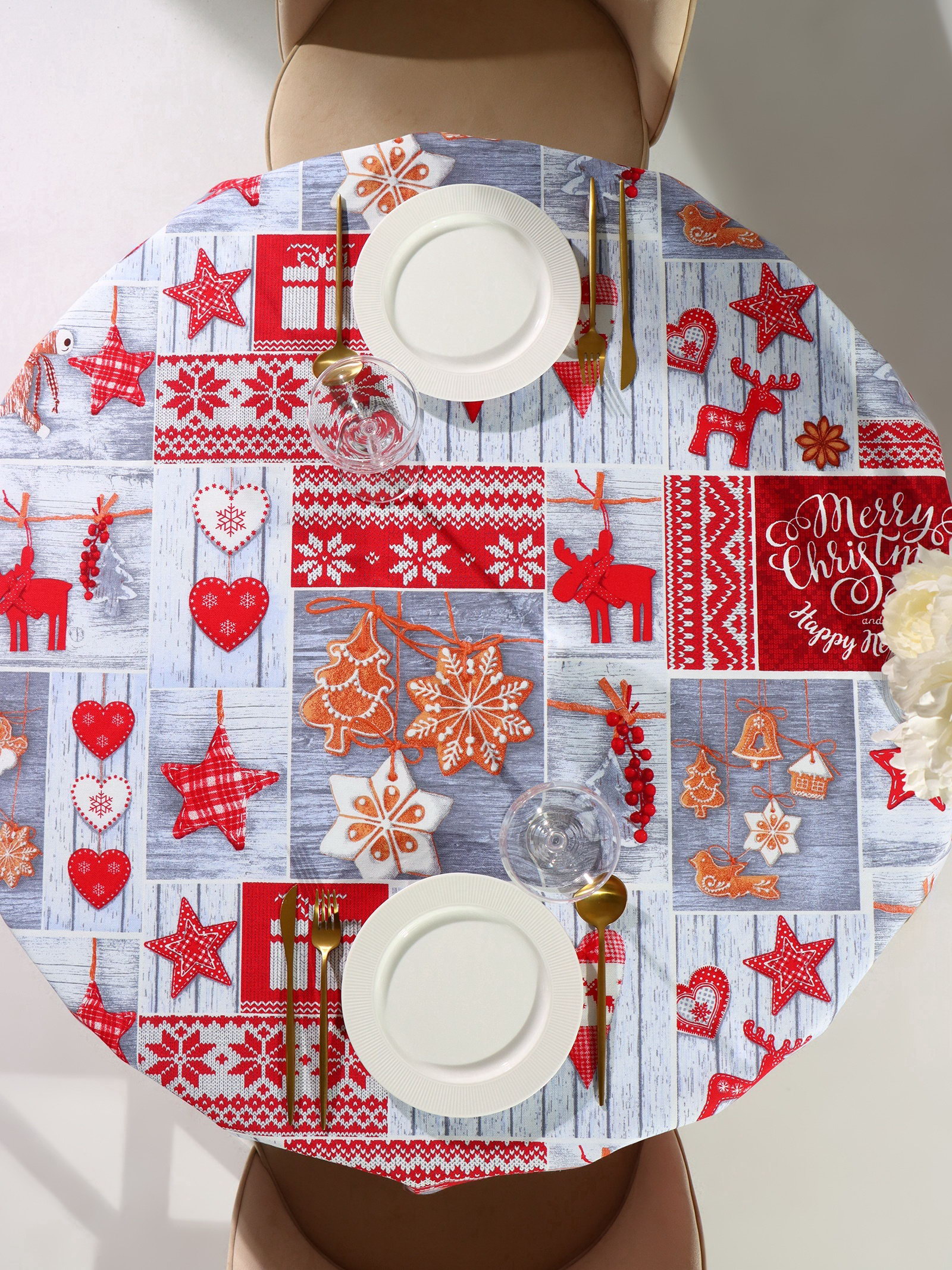 Скатерть новогодняя рогожка Чудеса 150x150 см, хл100%, 170 г/?2, DomoVita, Россия