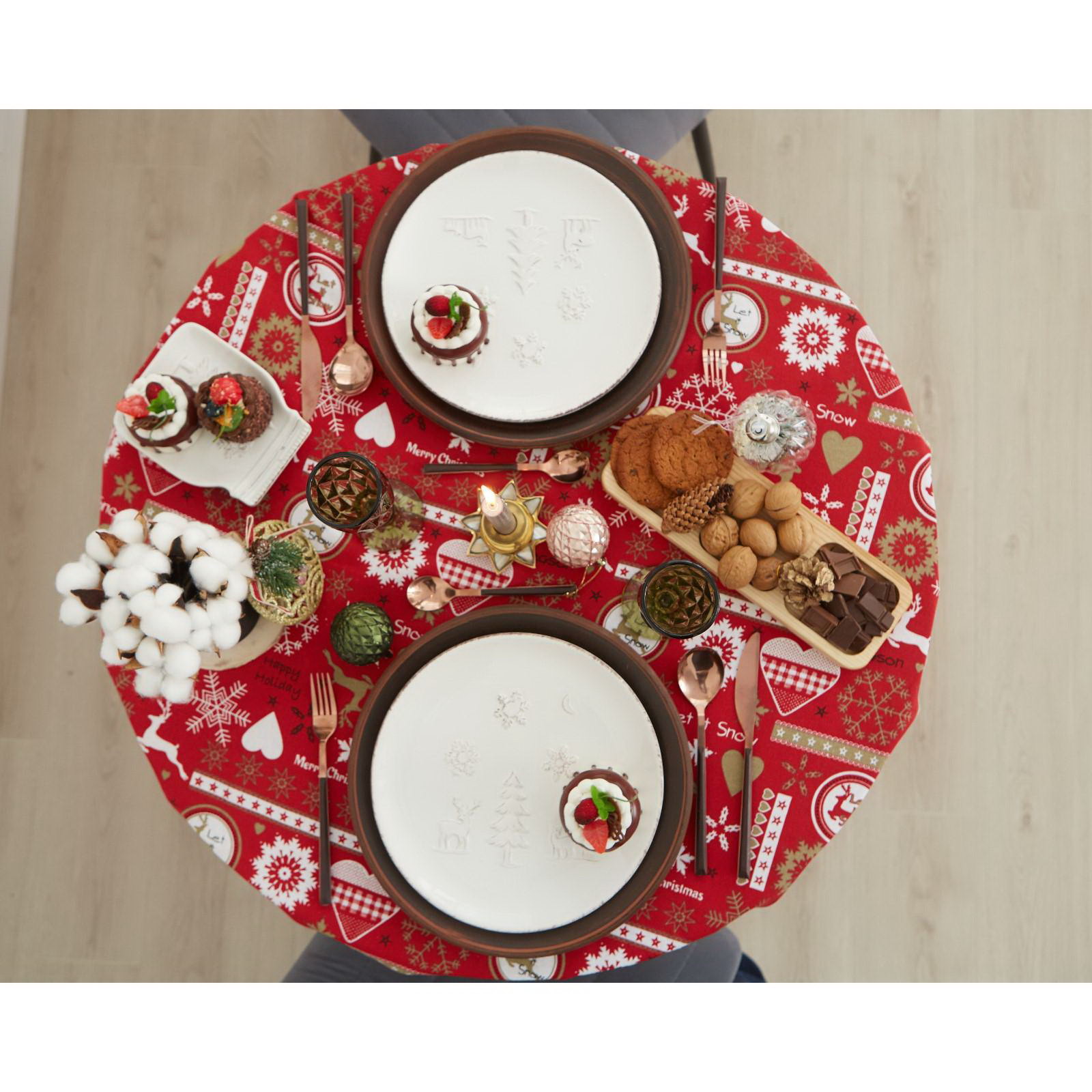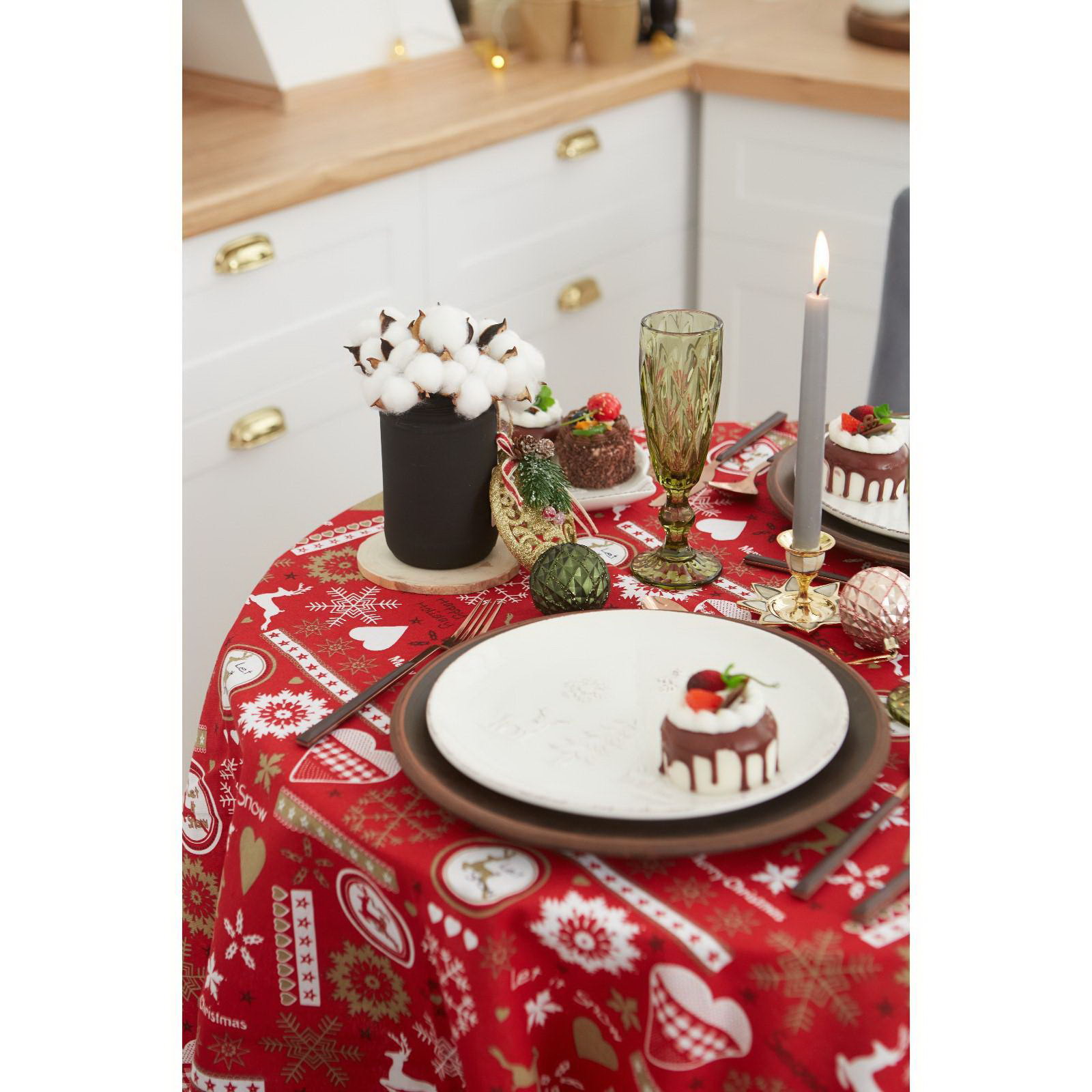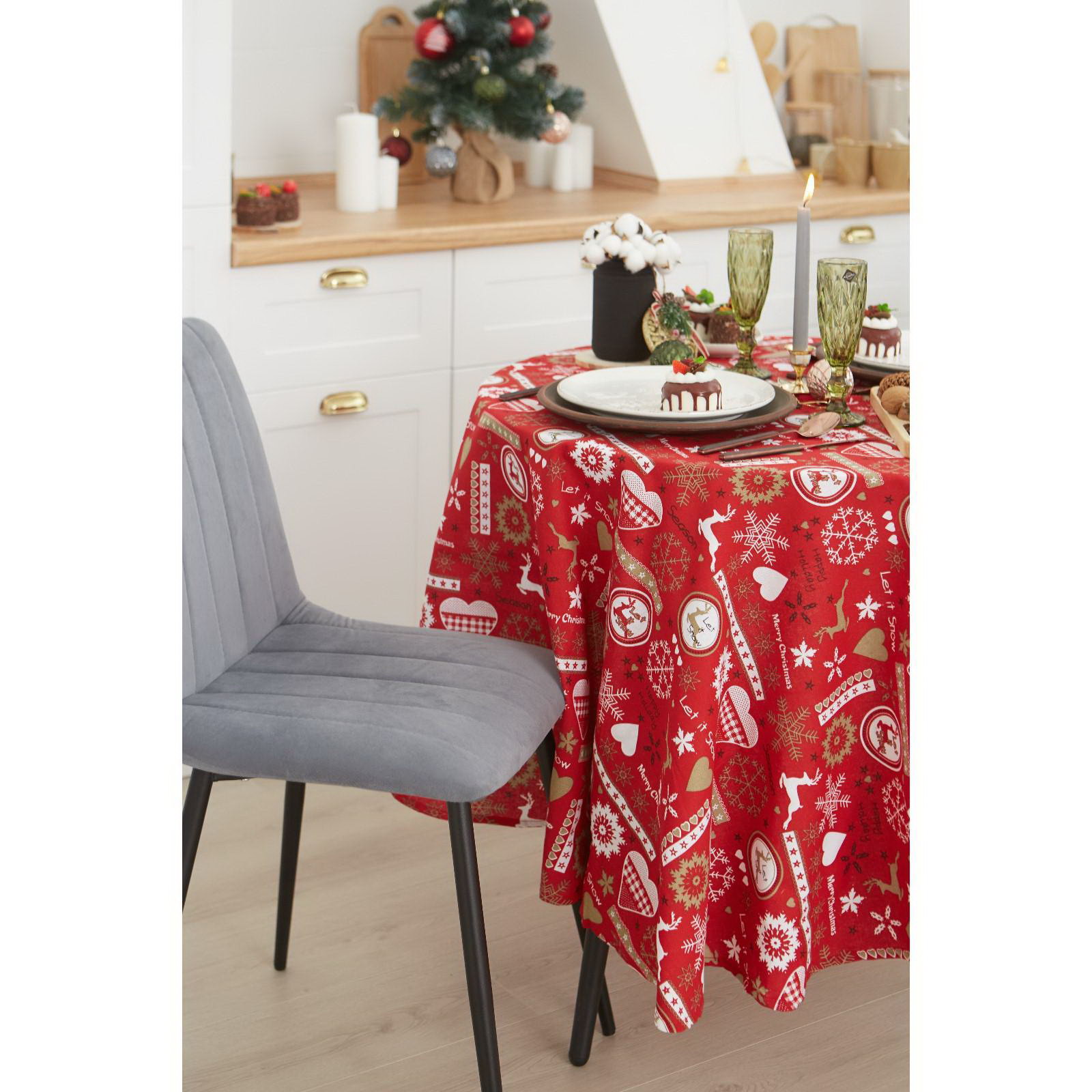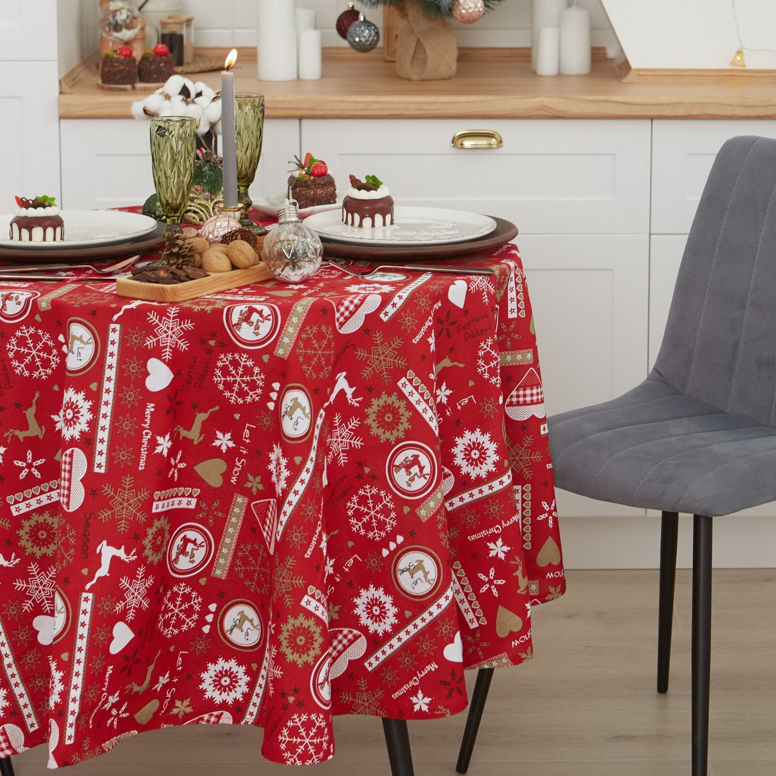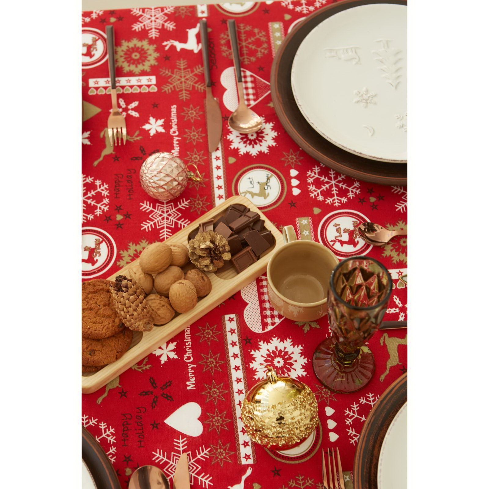 Создайте праздничное настроение Эта скатерть простой и эффектный способ обозначить центр праздника. Её рисунок задаёт тон всему торжеству, а тёплый красный фон делает сервировку ярче и наряднее. Она станет основой для ваших новогодних и рождественских фотографий, сохраняя в памяти атмосферу самого семейного праздника года. | ||