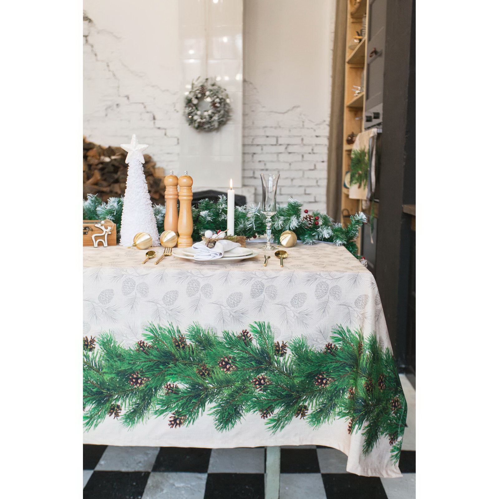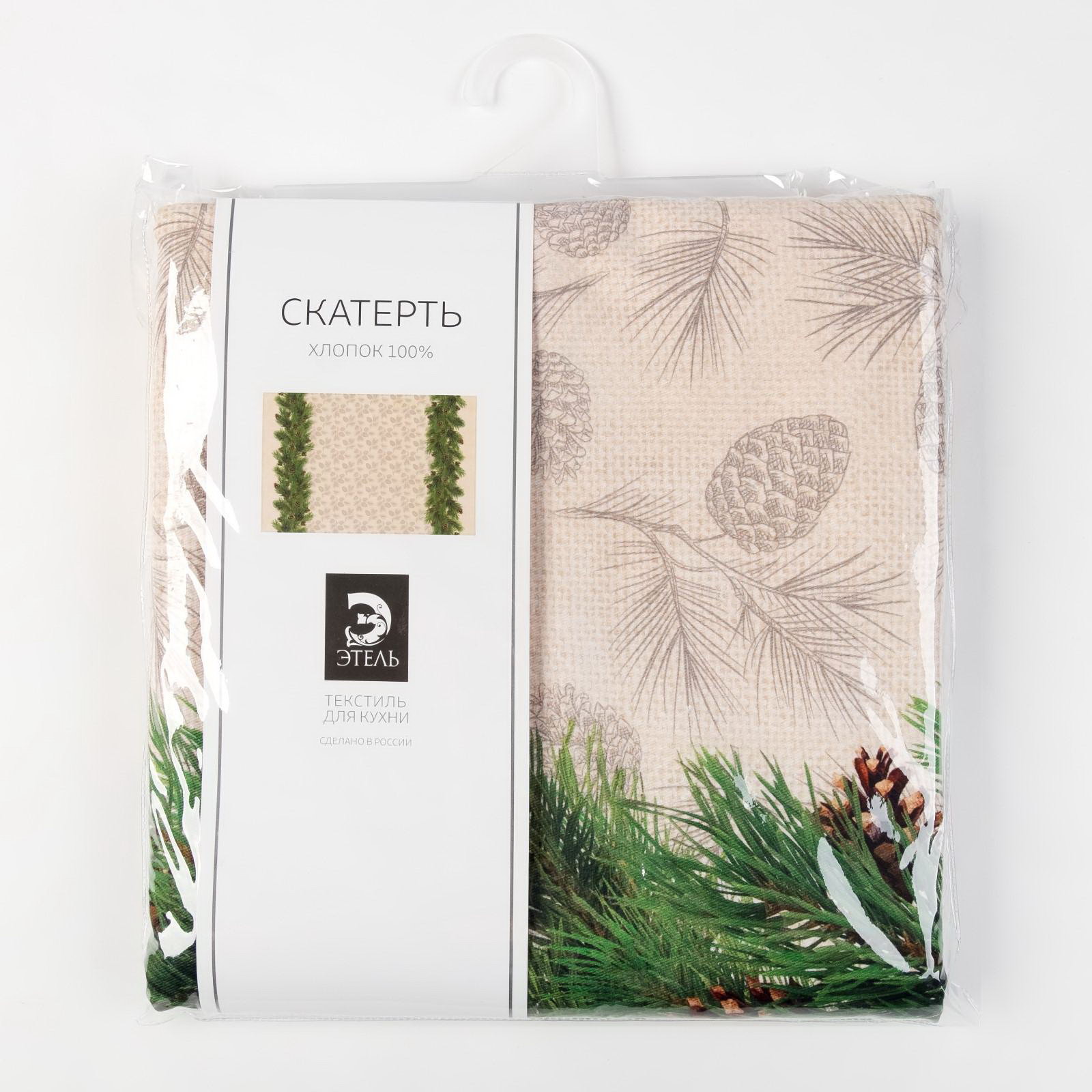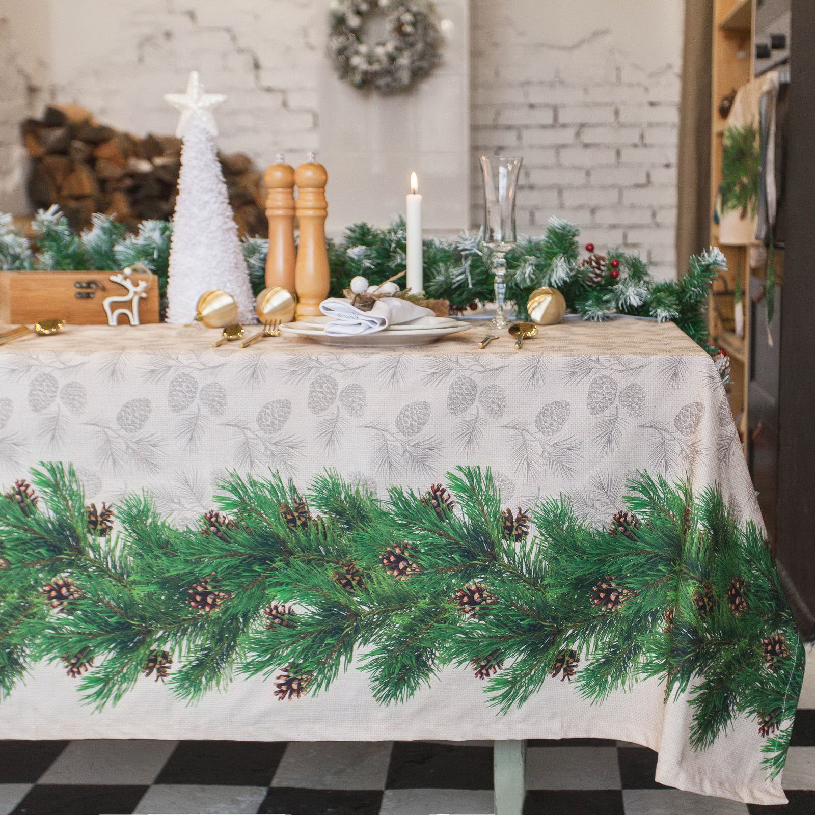Скатерть новогодняя Еловые ветви 180х148+/- 3см, 100% хл, саржа 190 гр/м2, 150x180 см., Этель, Россия