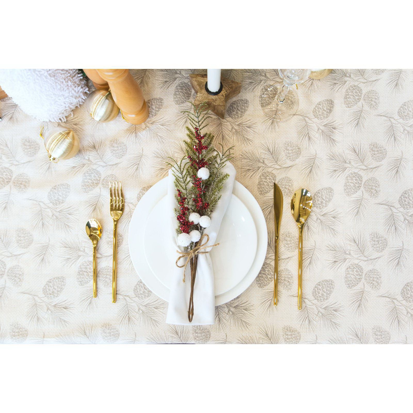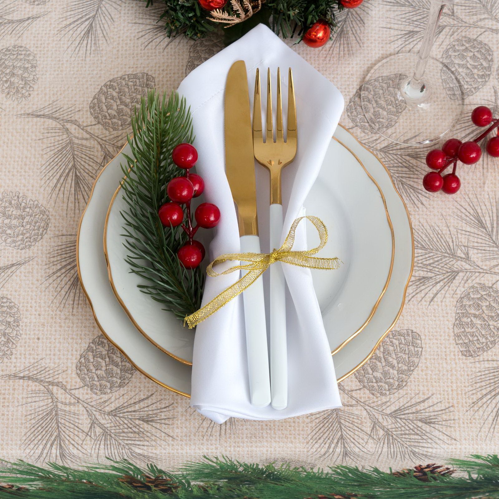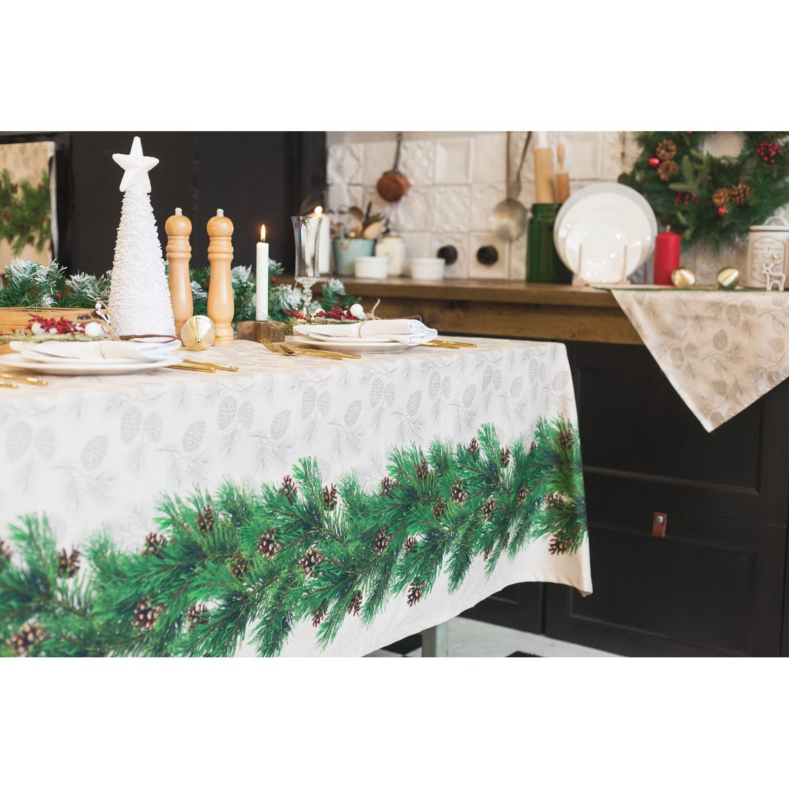 Скатерть новогодняя Еловые ветви 180х148+/- 3см, 100% хл, саржа 190 гр/м2, 150x180 см., Этель, Россия