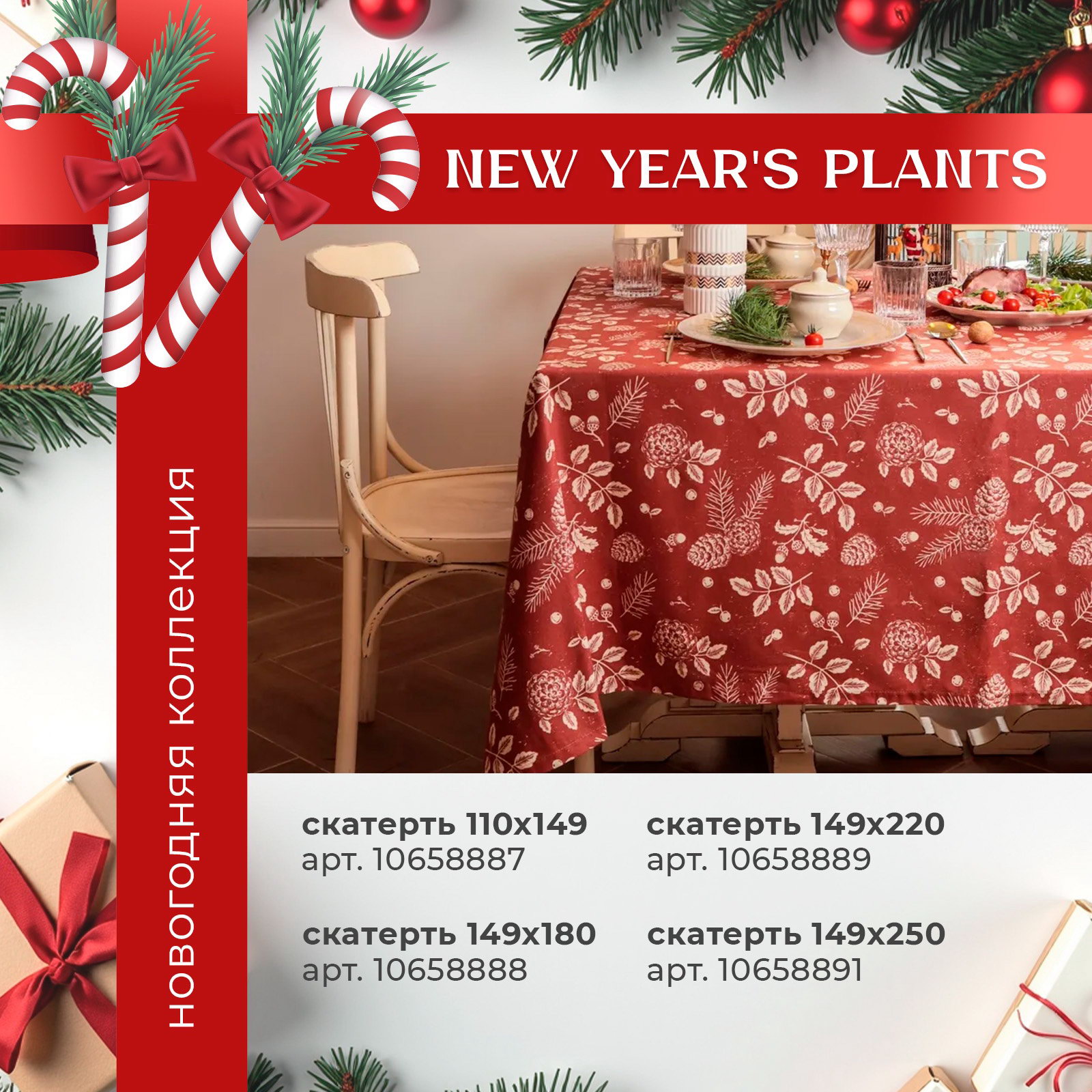 Скатерть "New Year's plants" 149x180 см, 100% хл, рогожка 186 г/?2, Этель, Россия
