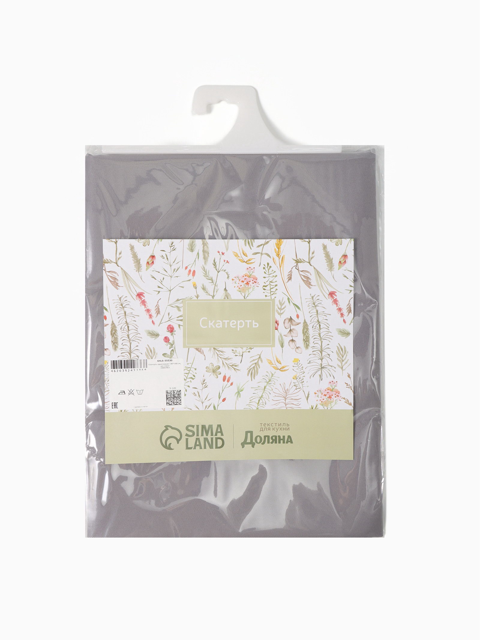 Скатерть однотонная, серая, 140x200 см, 140x200x0.1 см., Доляна, Китай