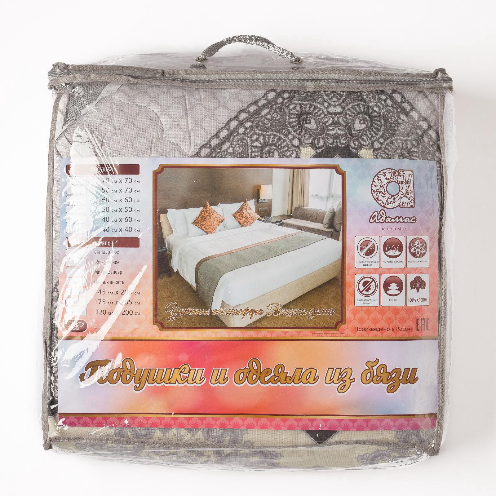 Одеяло всесезонное 200x220 см, овечья шерсть 200 г/м, бязь 120 г/м, хлопок 100%, МИКС, 200x220x1 см., Адамас, Россия
