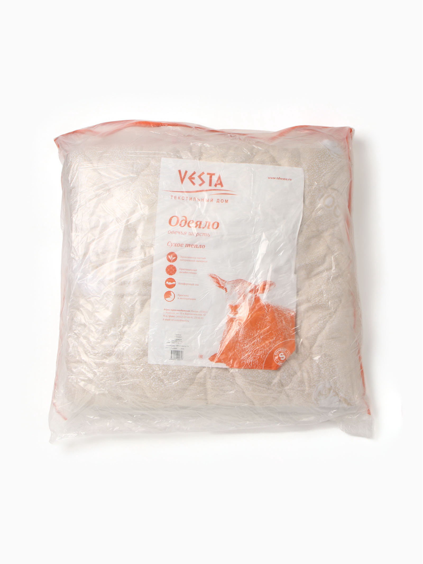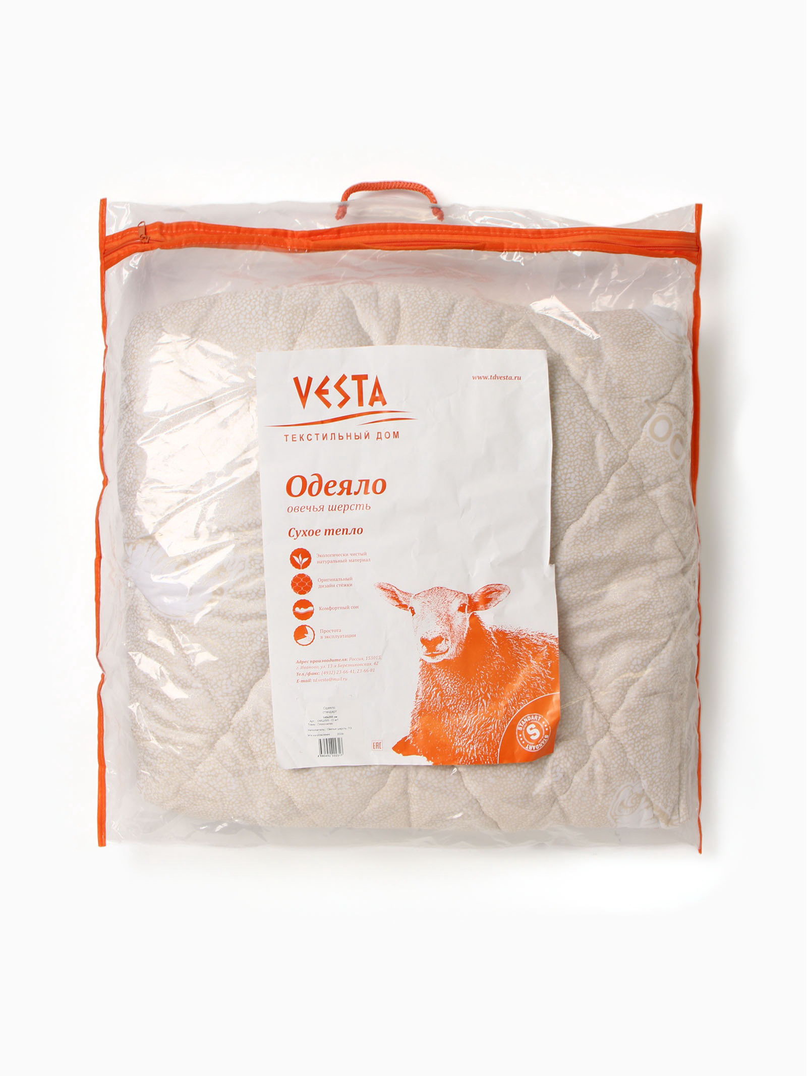 Одеяло стандарт ОМШ/300-15эк1 140х205см, овечья шерсть, ткань глосс-сатин, пэ100%, VESTA, Россия