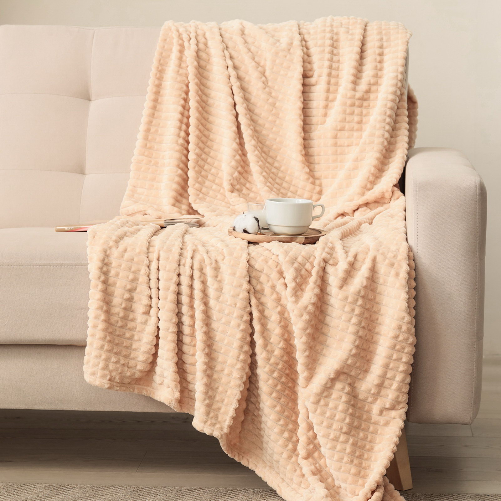 Плед "Клетка" 180*200 см, цв.бежевый, корал-флис, 240гр/м2, 100% полиэстер, 180x200 см., Этель, Россия