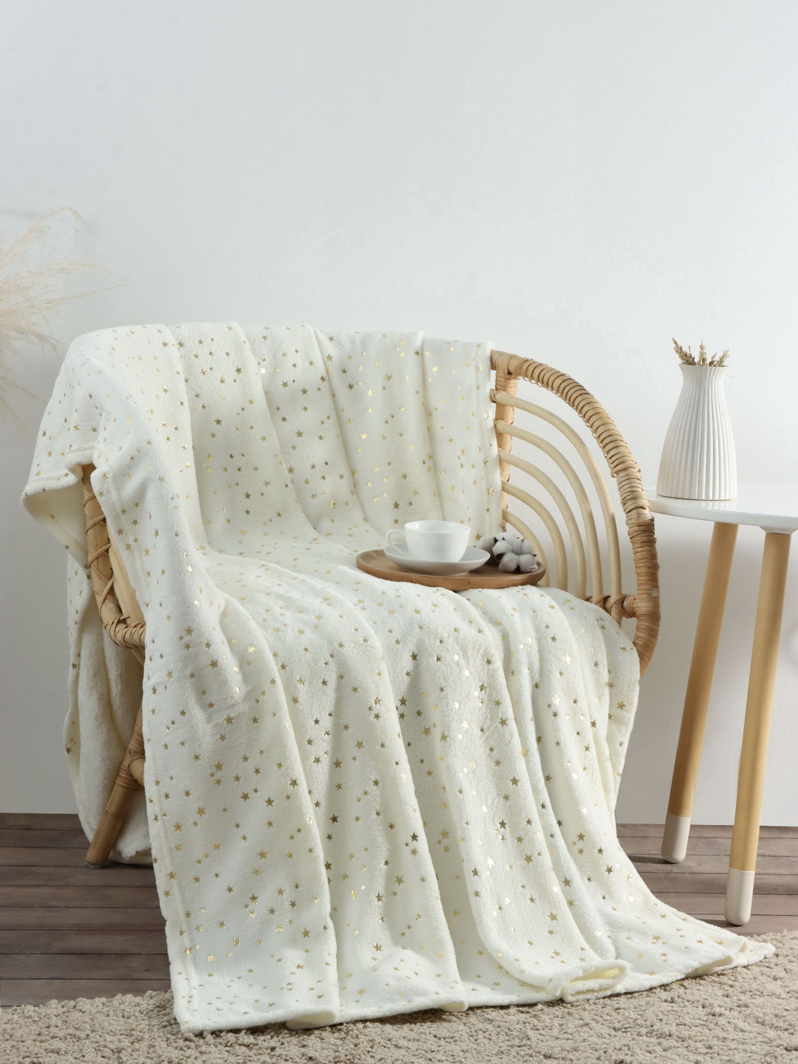 Плед "Этель. Золотые звезды", 150x200 см, корал-флис, белый, 150x200 см., Этель, Россия