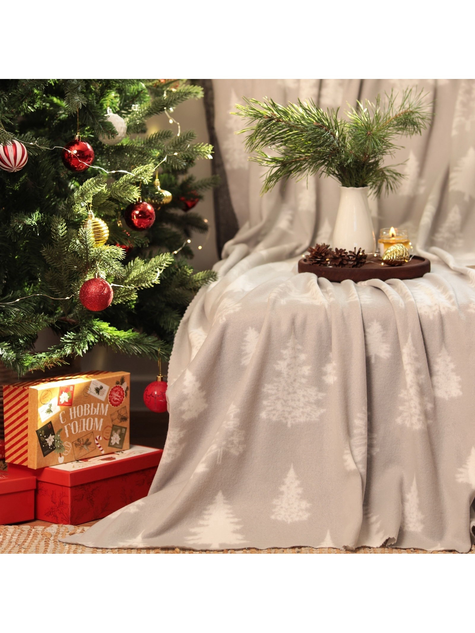 Плед флисовый новогодний "Экономь и Я. Ёлочки", 150x130 см, пл.160 г/?2, 150x130 см., Экономь и Я, Россия