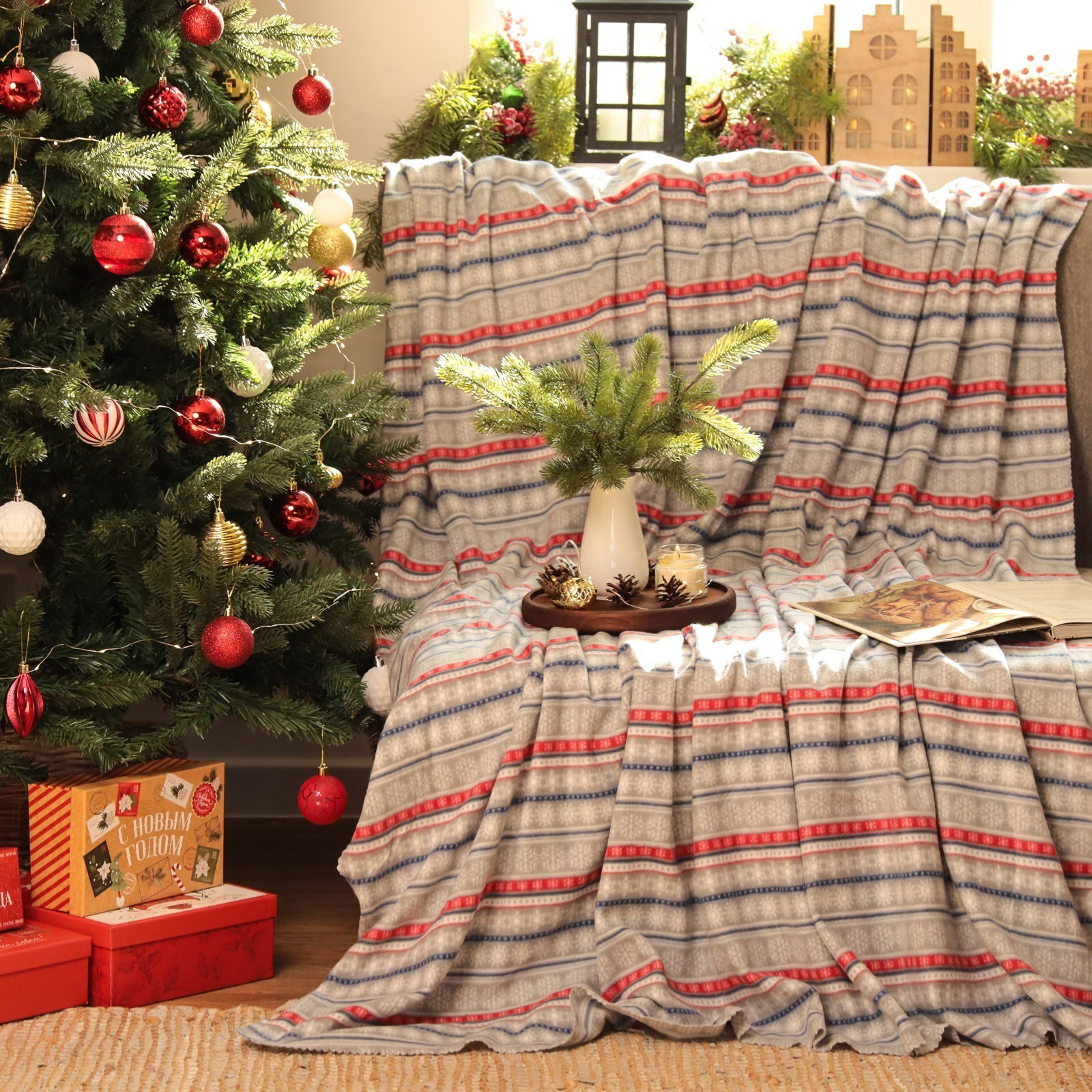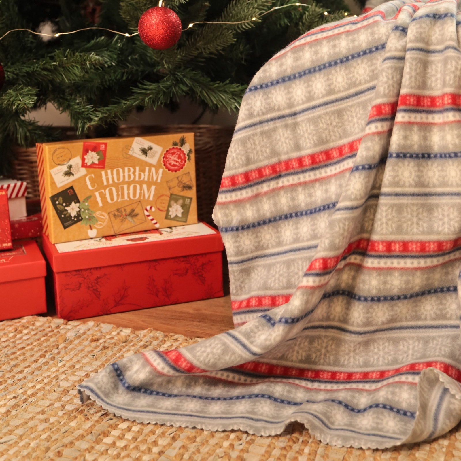 Плед флисовый новогодний "Новогодний узор" 150x200 см, 150x200 см., Экономь и Я, Россия