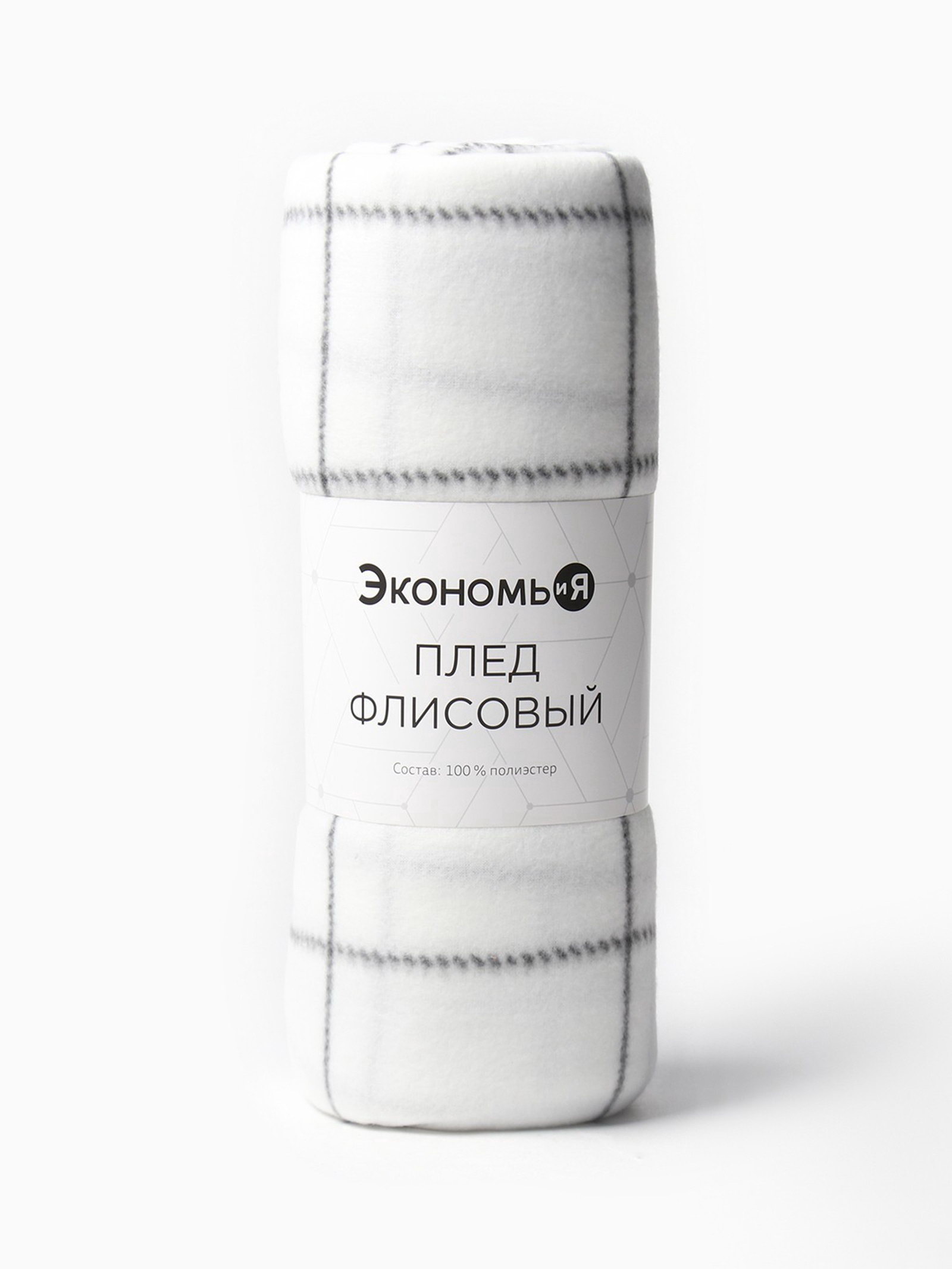 Плед флисовый "Экономь и Я. Клетка", 150x200 см, флис 160 г/?2, белый, Экономь и Я, Россия