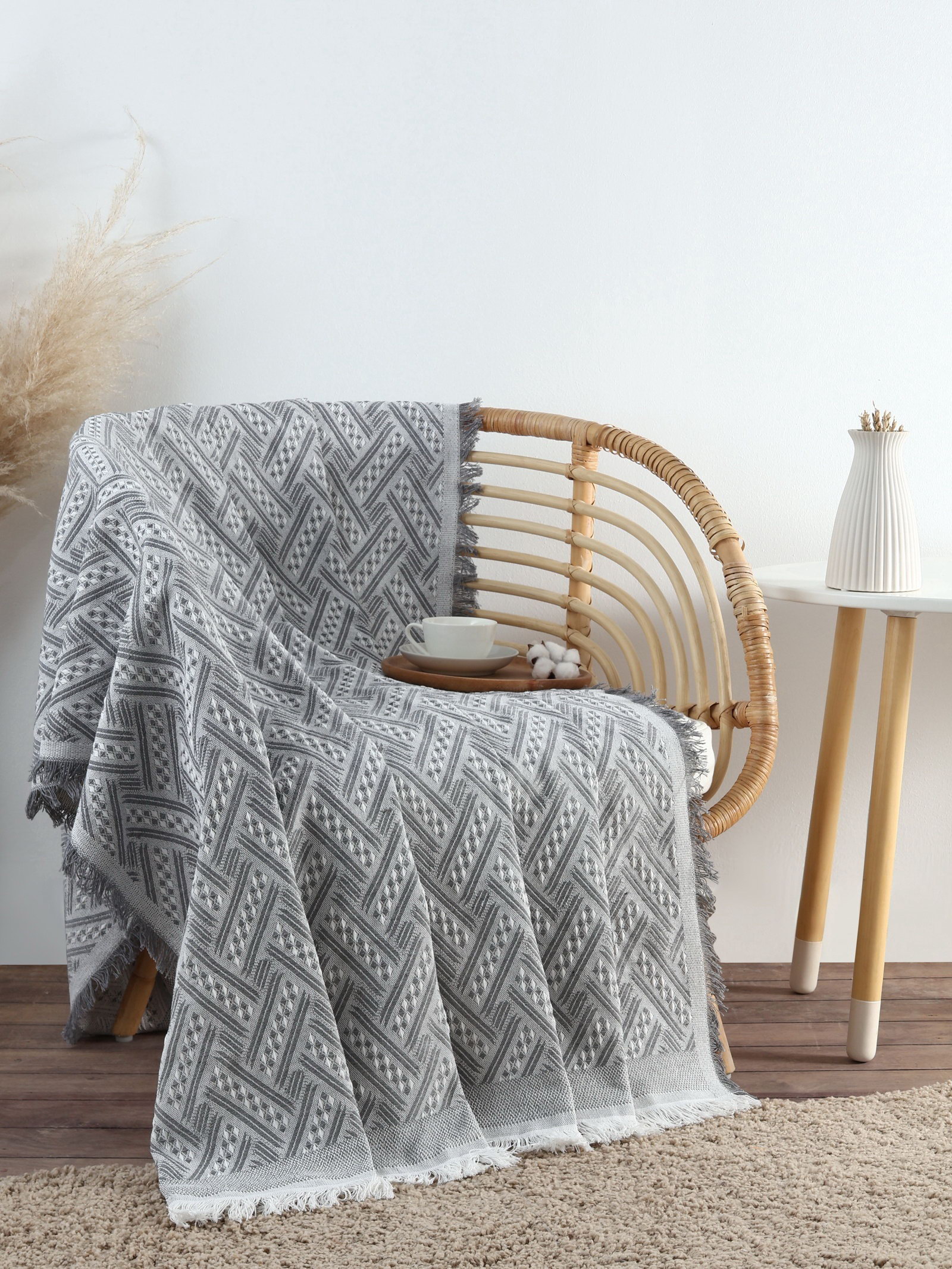 Плед с бахромой Home, 130x180 см, серый, 130x180 см., Этель, Россия