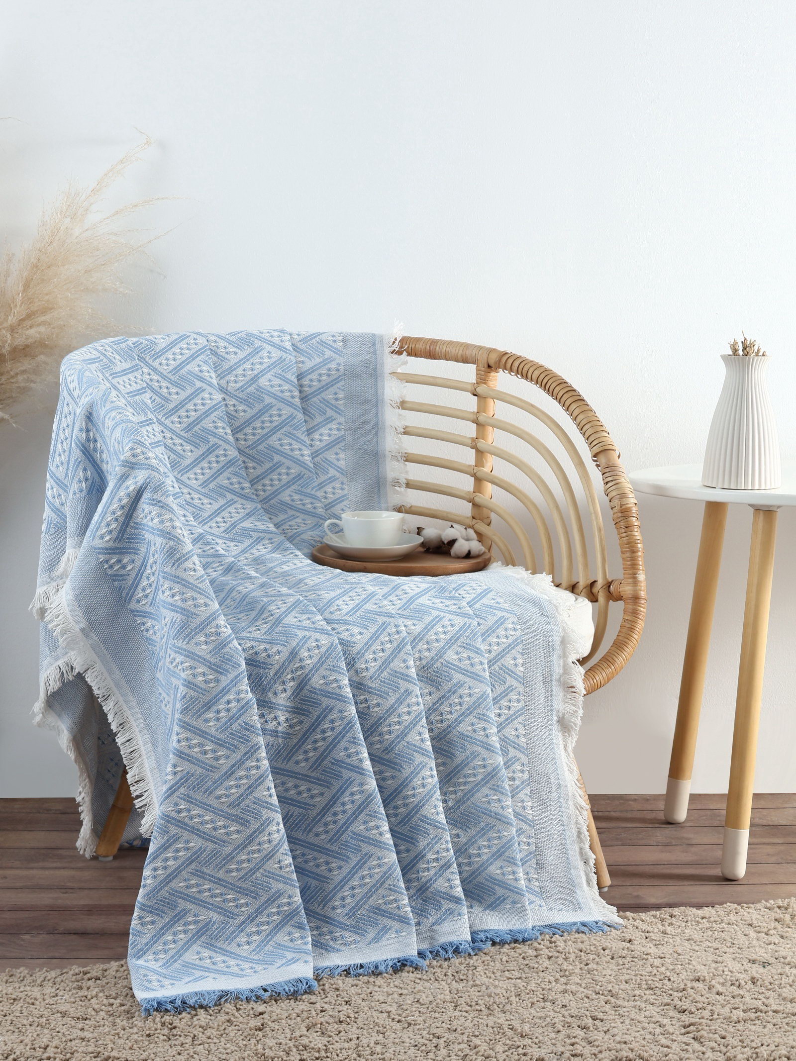Плед с бахромой Home, 130x180 см, голубой, жаккард, 130x180 см., Этель, Россия