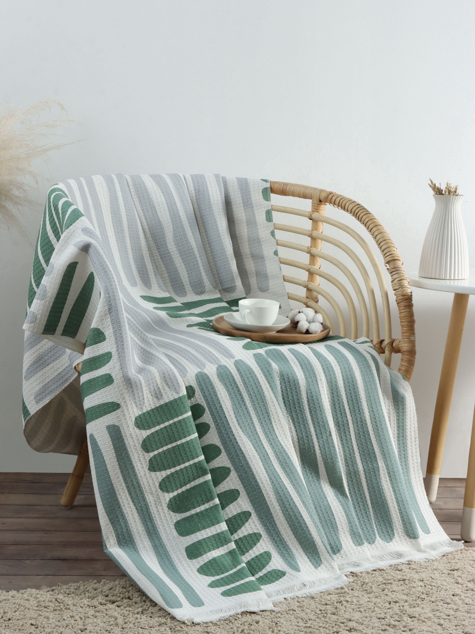 Цвет: Зелёный, Серый Состав ткани: Полиэстер, Хлопок Рекомендации по уходу: Бережный режим глажки, Не отбеливать, Стирка при 40 ℃ Сезон: Весна, Зима, Лето, Осень Размер упаковки: 12 x 12 x 24 см. Комплектация: Плед Тематика: Линии Размер постельного белья: 1-спальное и меньше Размер, см: 130 x 180 Назначение: Взрослым Декоративные элементы: Бахрома Наличие рукавов: Нет В подарочной упаковке: Нет Температурное ограничение: Нет Набор: Нет Ткань: Вафельное полотно Фактура материала: Вафельный Фактура материала: Вафельный tnved: 9404300000 Вид упаковки: Пакет | ||