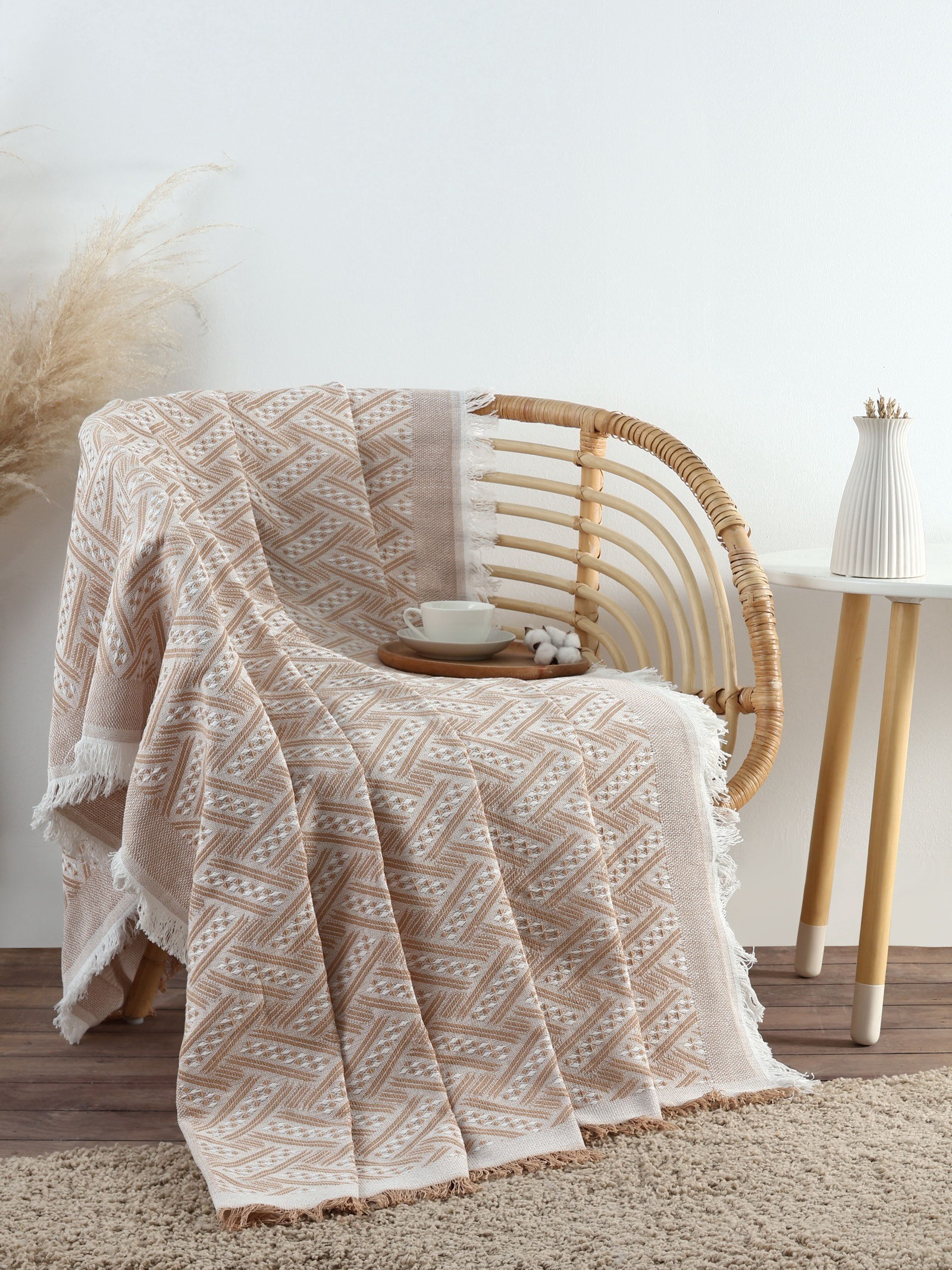 Плед с бахромой Home, 130x180 см, бежевый, жаккард, 130x180 см., Этель, Россия