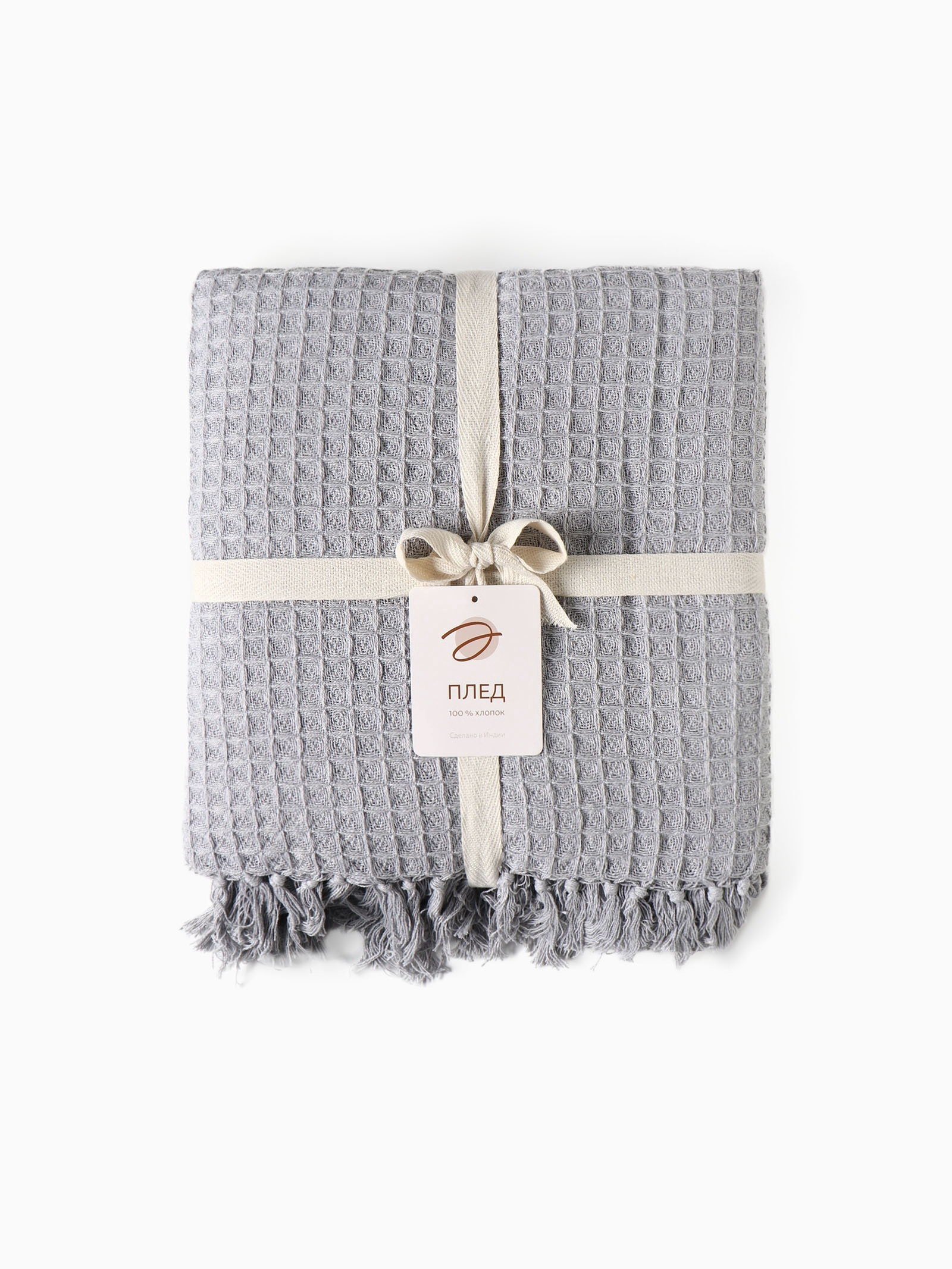 Плед вафельный 220x240 см, светло-серый, хлопок 100%, 350 г, 45x40x55 см., Этель, Китай