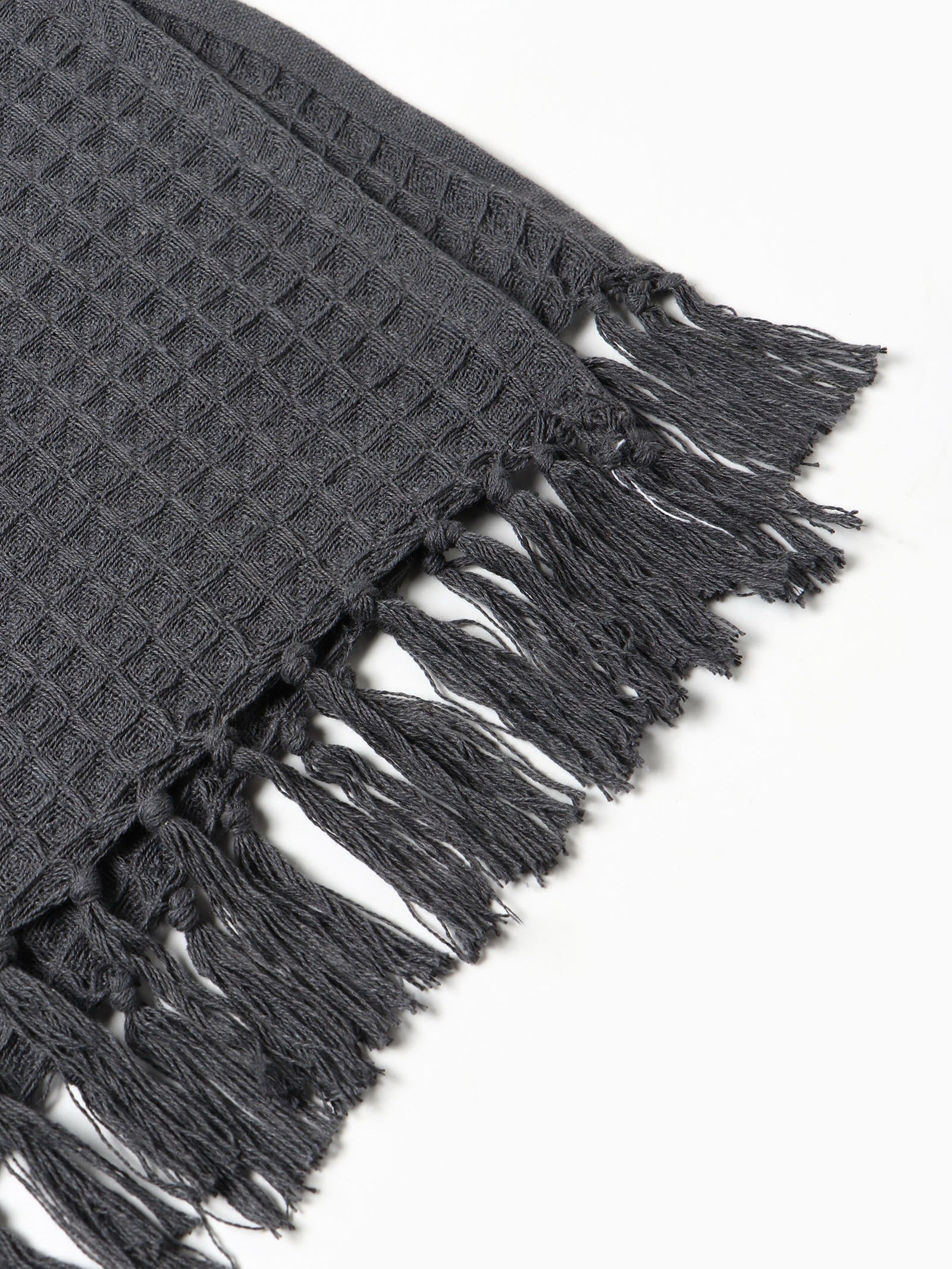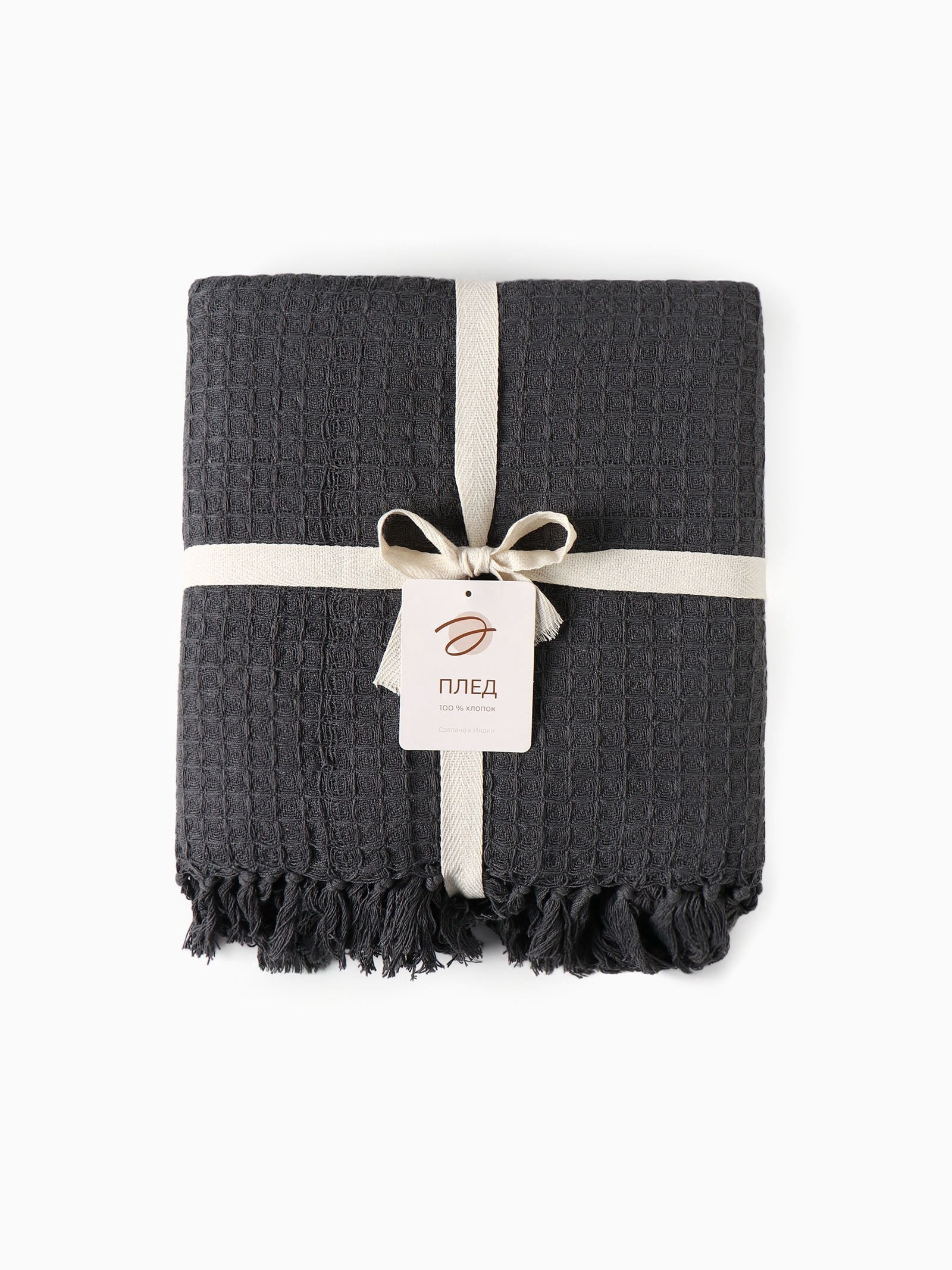 Плед с кисточками вафельный 130x160 см, серый, вафля 350 г, 60x29x49 см., Этель, Китай
