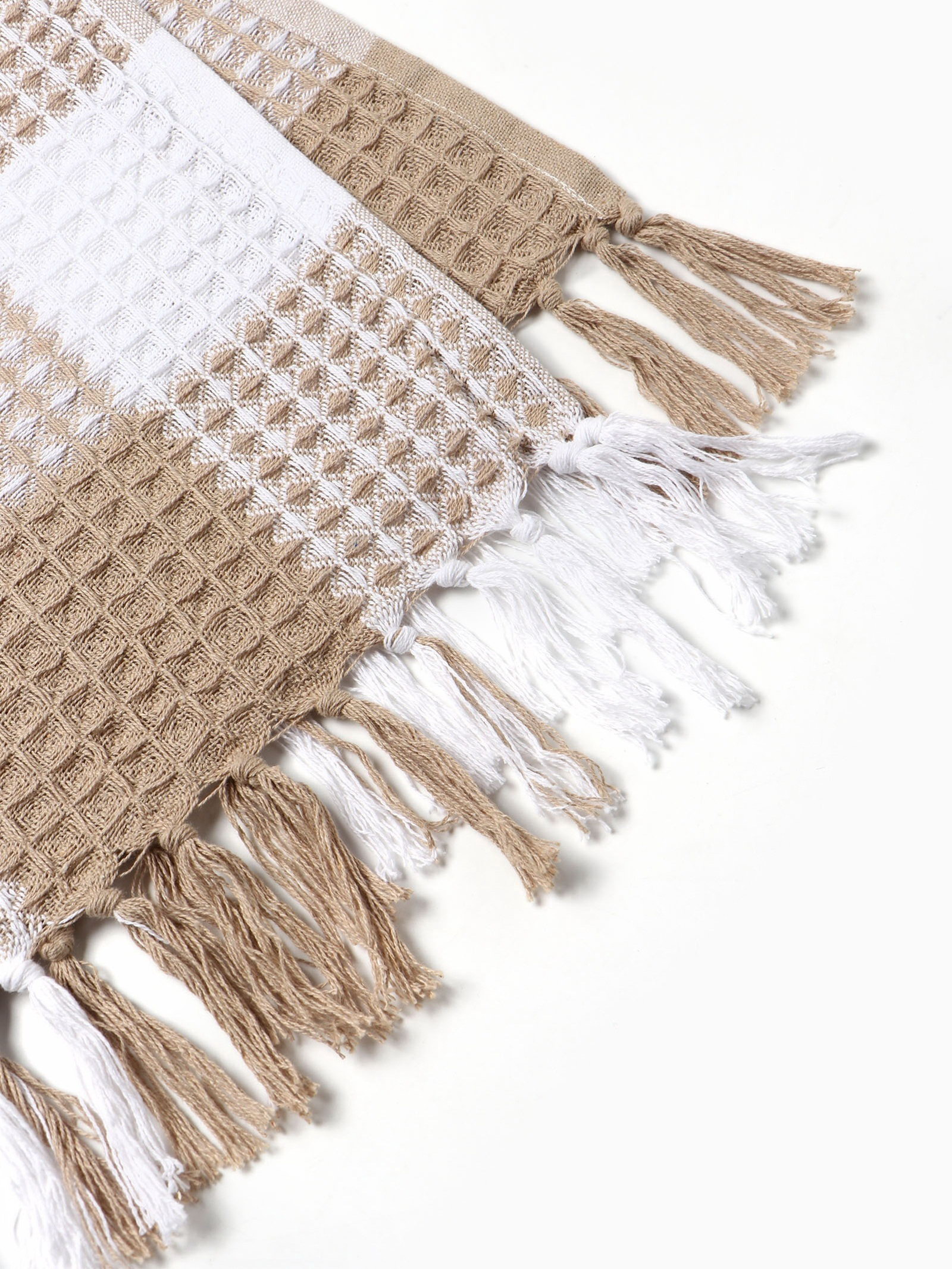 Плед вафельный "Клетка" 220x240 см, бежевый, хлопок 100%, 350 г, 45x40x55 см., Этель, Китай