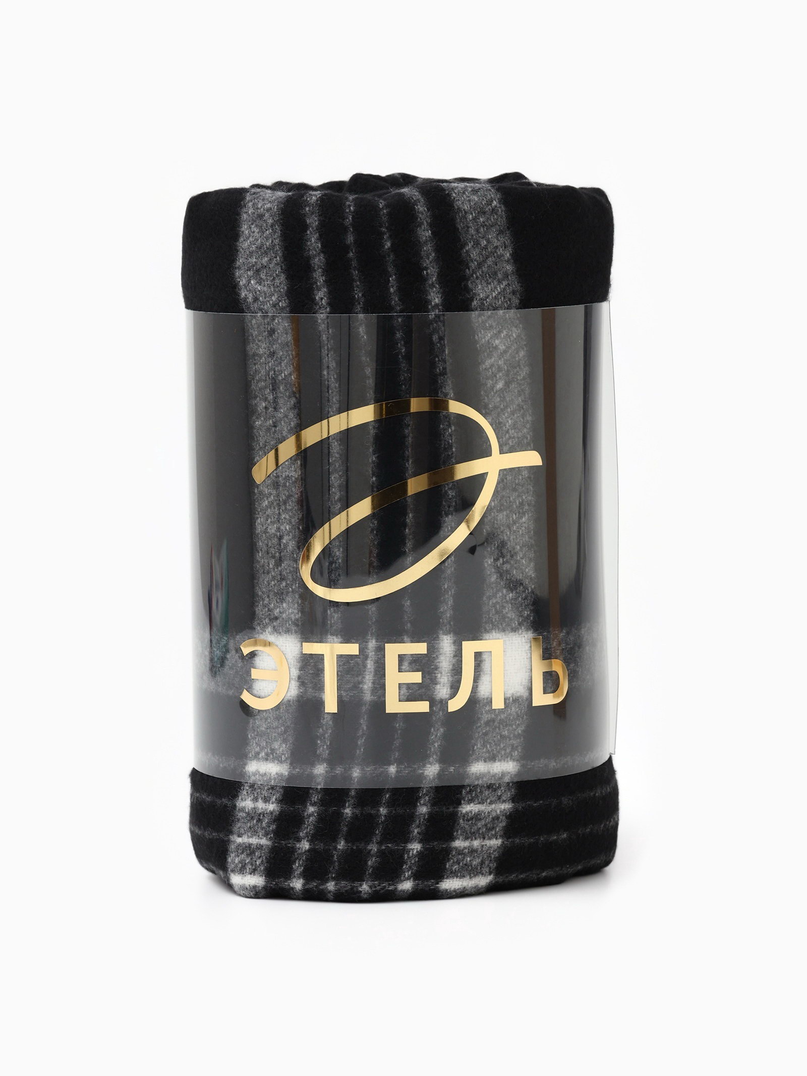 Плед с бахромой "Этель. Клетка", 120x160 см, чёрный, Этель, Россия