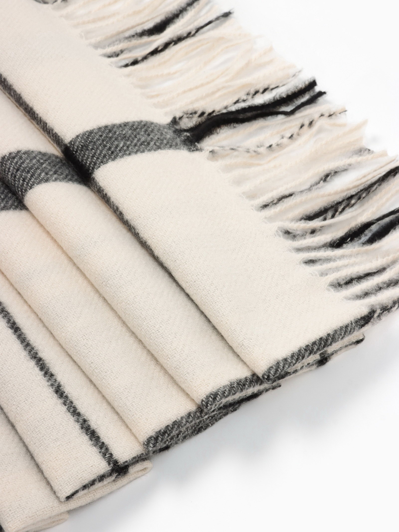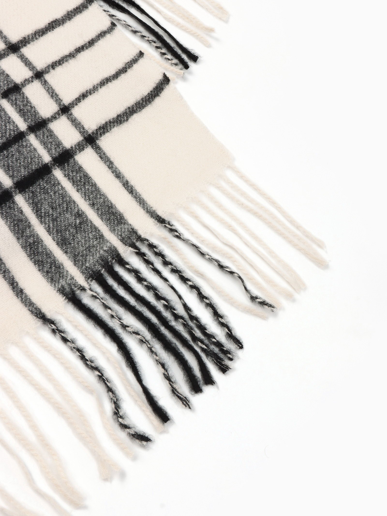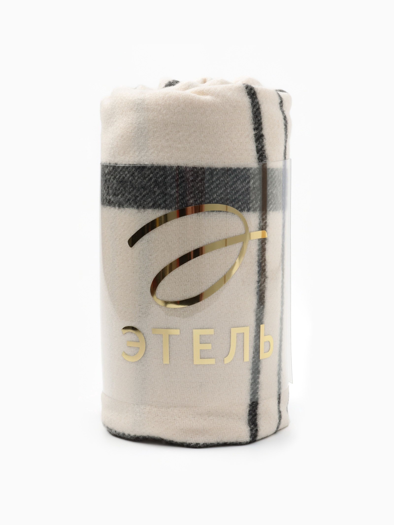 Плед с бахромой "Этель. Клетка", 130x160 см, молочный, Этель, Россия