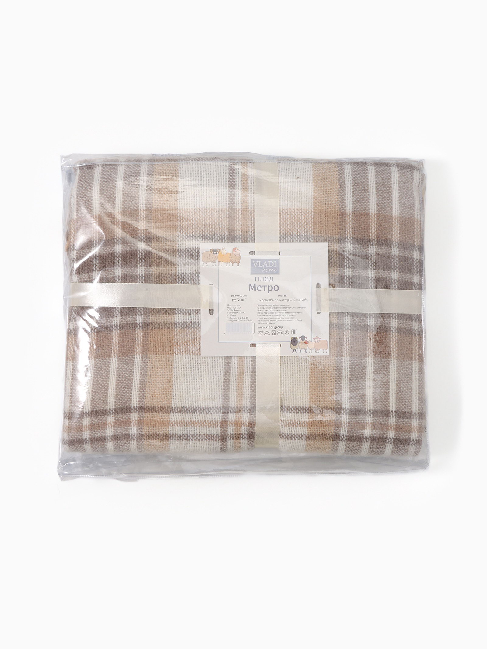 Плед "Метро" 170x210 см, белый/бежевый/коричневый, VLADI, Россия