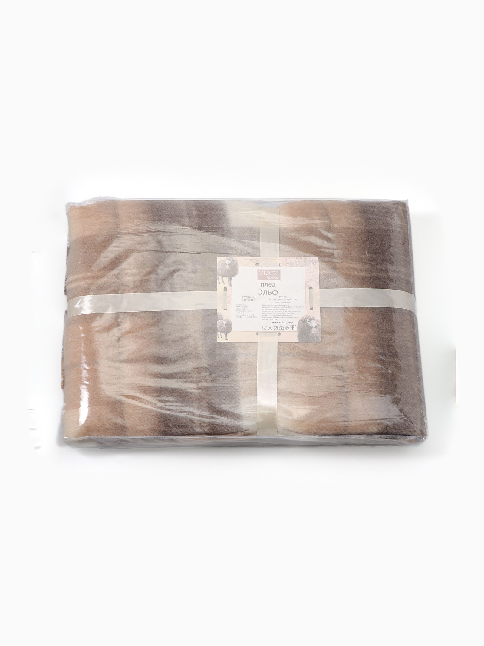 Плед "Эльф" 140x200 см, новозеландская шерсть, белый/серый/коричневый, VLADI, Россия