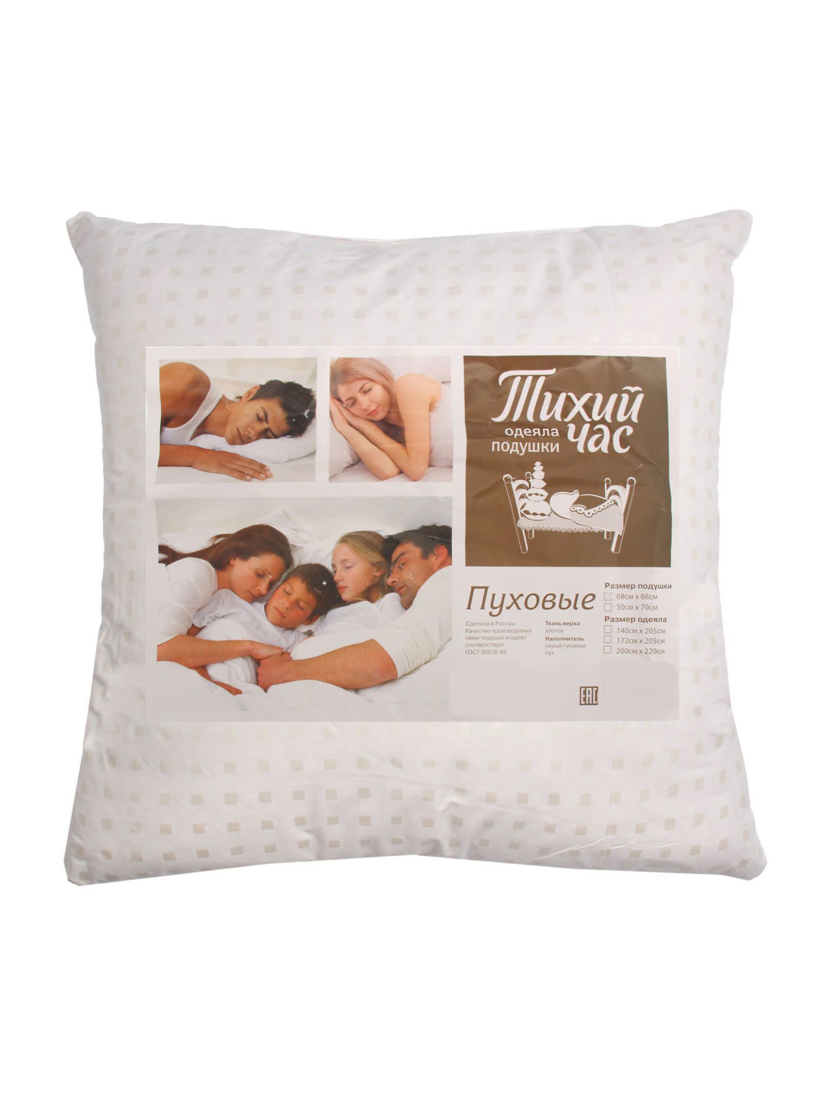 Подушка высокая Тихий Час Пуховые, размер 68x68 см, тик, 68x68x7 см., BELASHOFF, Россия