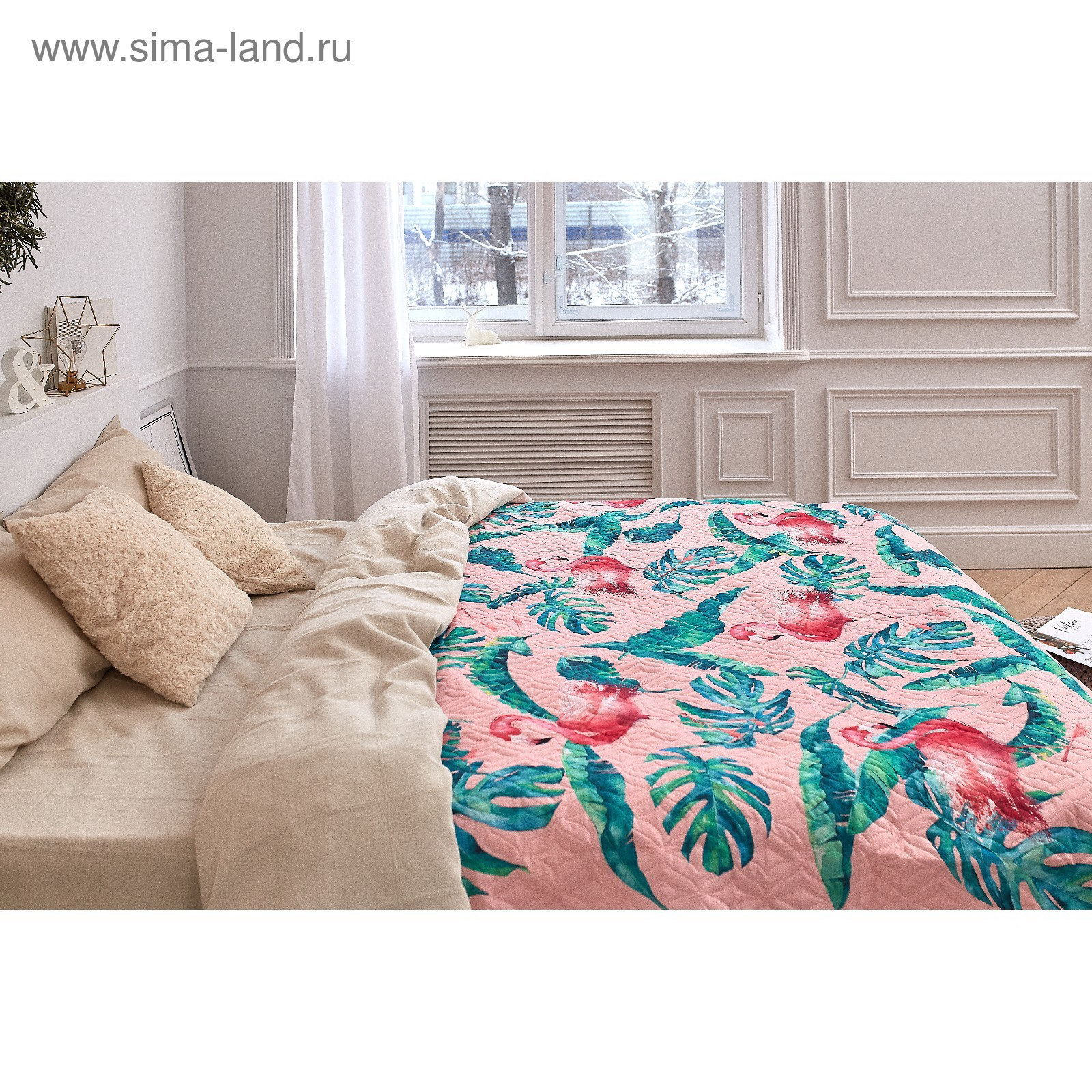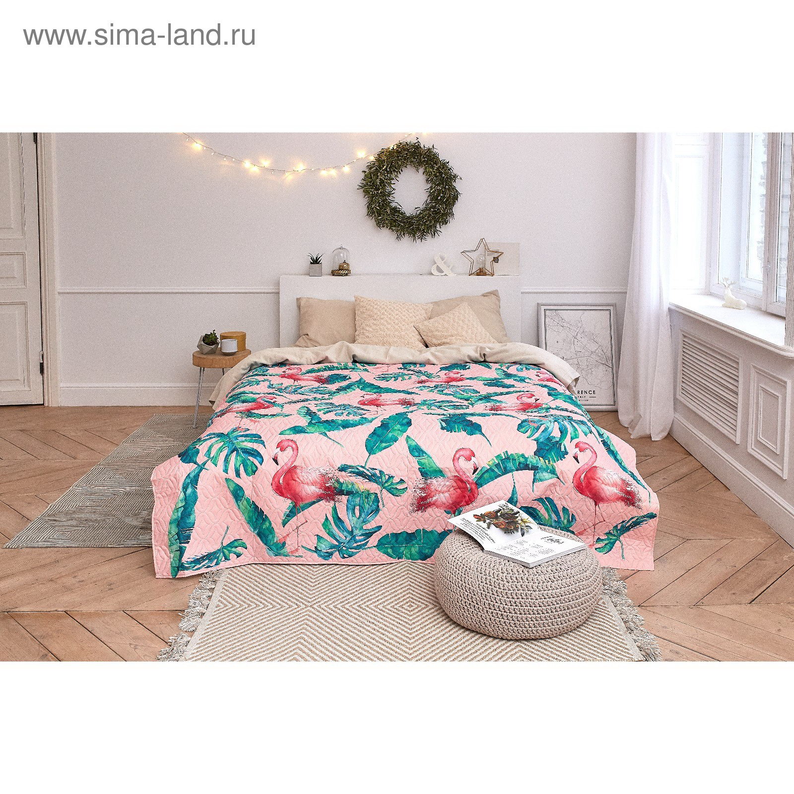 Покрывало 1.5 сп Tropical flamingo, 140*210+-2 см, микрофибра, Этель, Россия