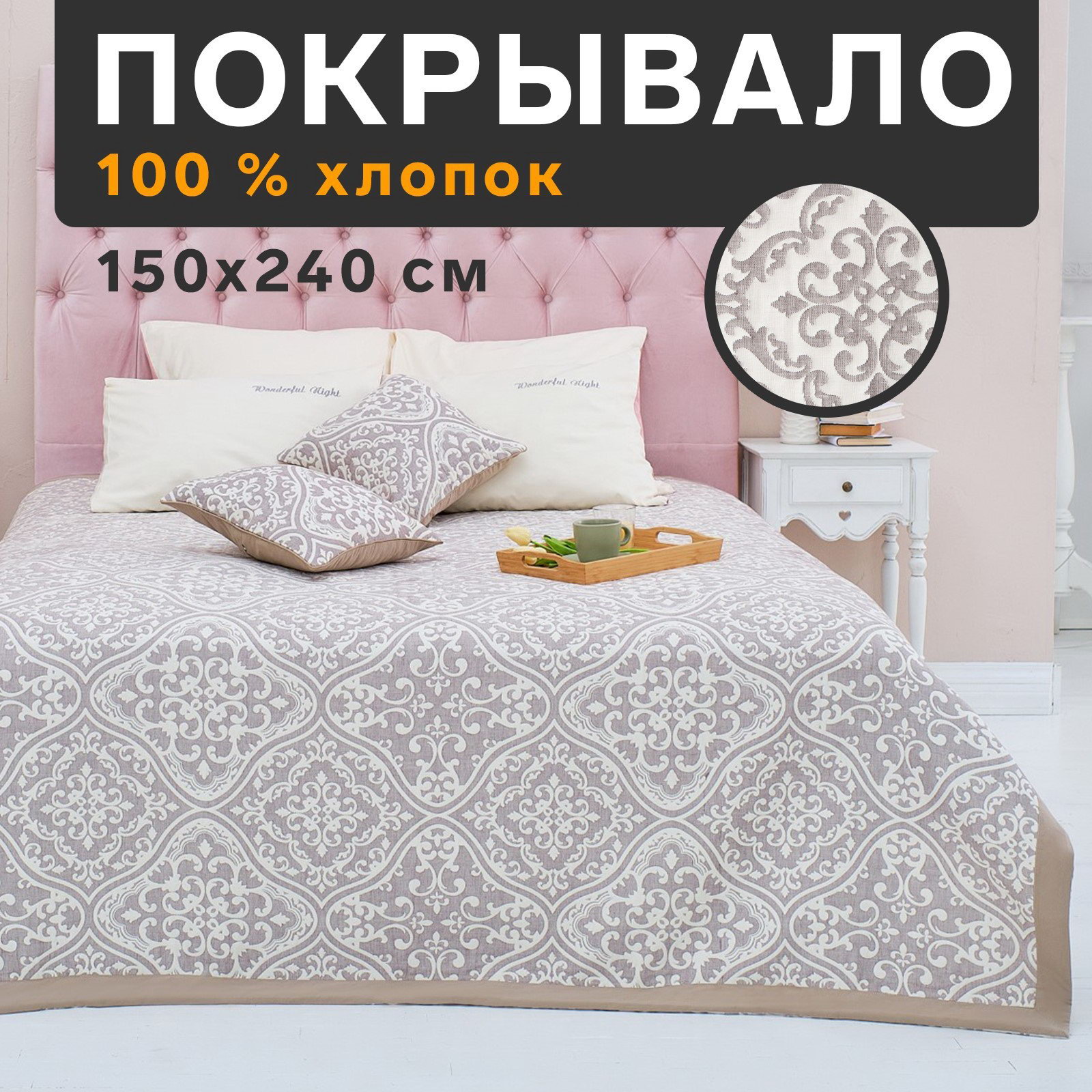 Покрывало хлопковое "Орнамент" 150х240+-5 см, цвет серый, 100%хлопок, 300гр/м2, 150x240 см., Этель, Россия