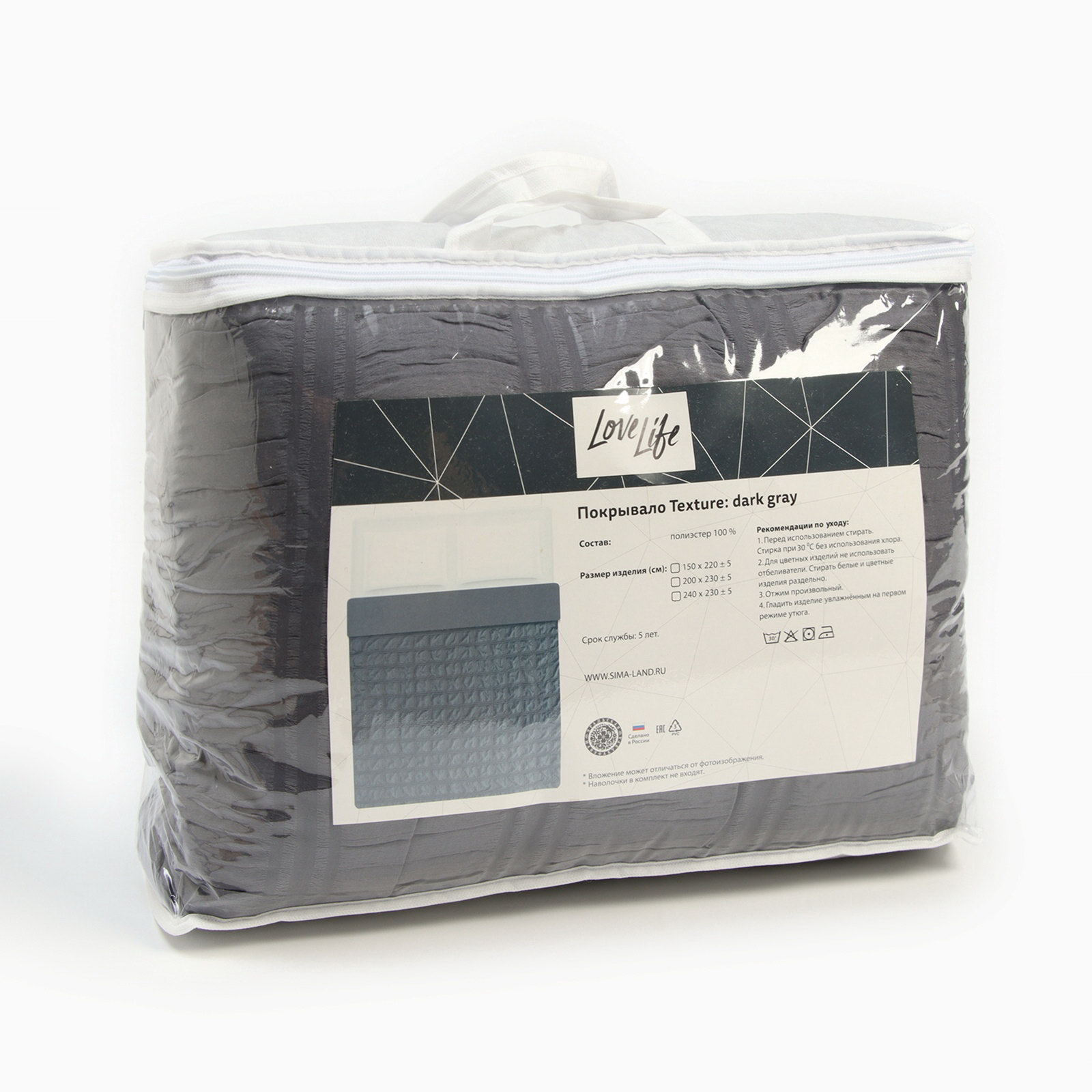 Покрывало Texture: dark gray, 200*230+-5см, микрофайбер, 100% п/э, 200x230 см., LoveLife, Россия