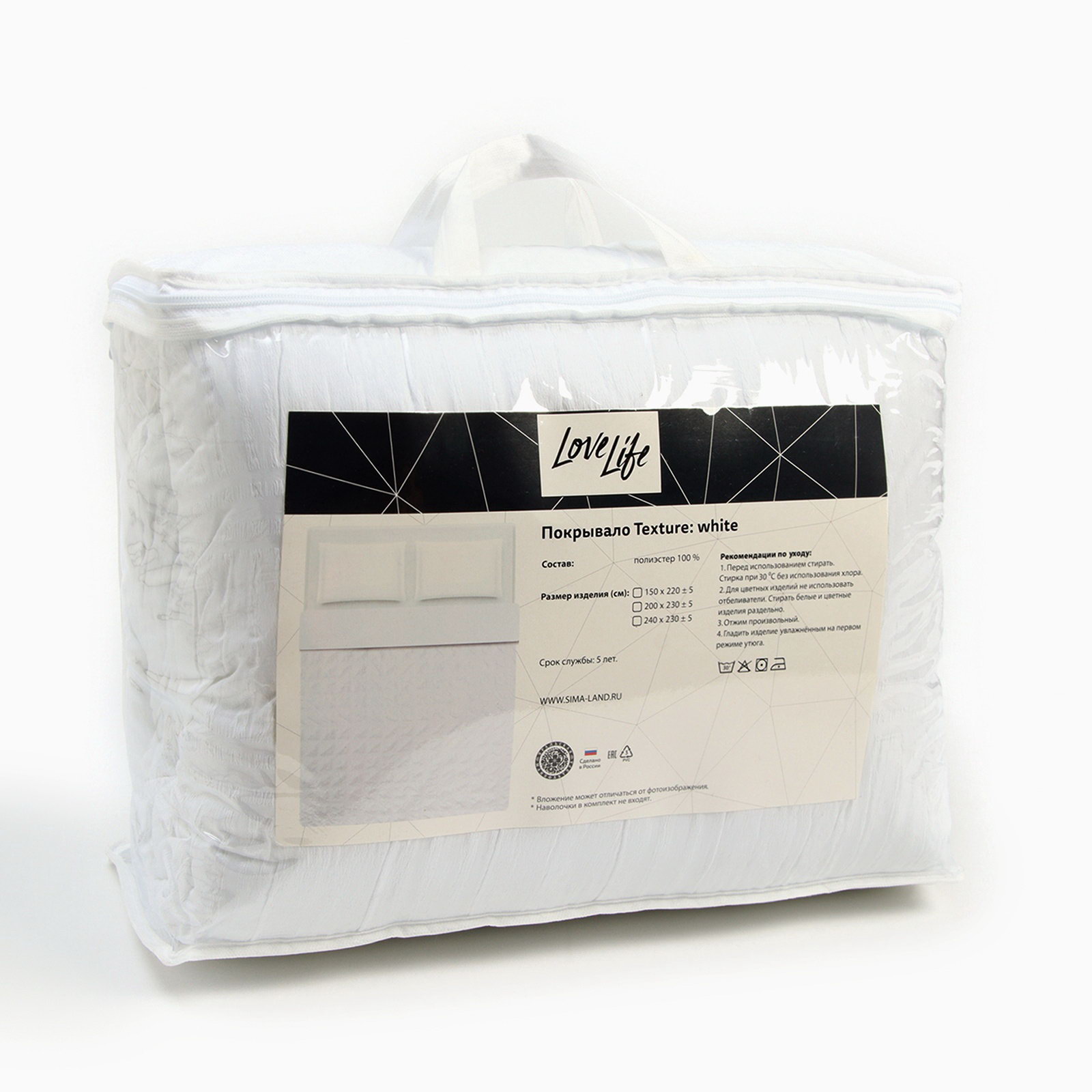 Покрывало евро Texture: white, 200x230+-5 см, микрофайбер, 200x230 см., LoveLife, Россия